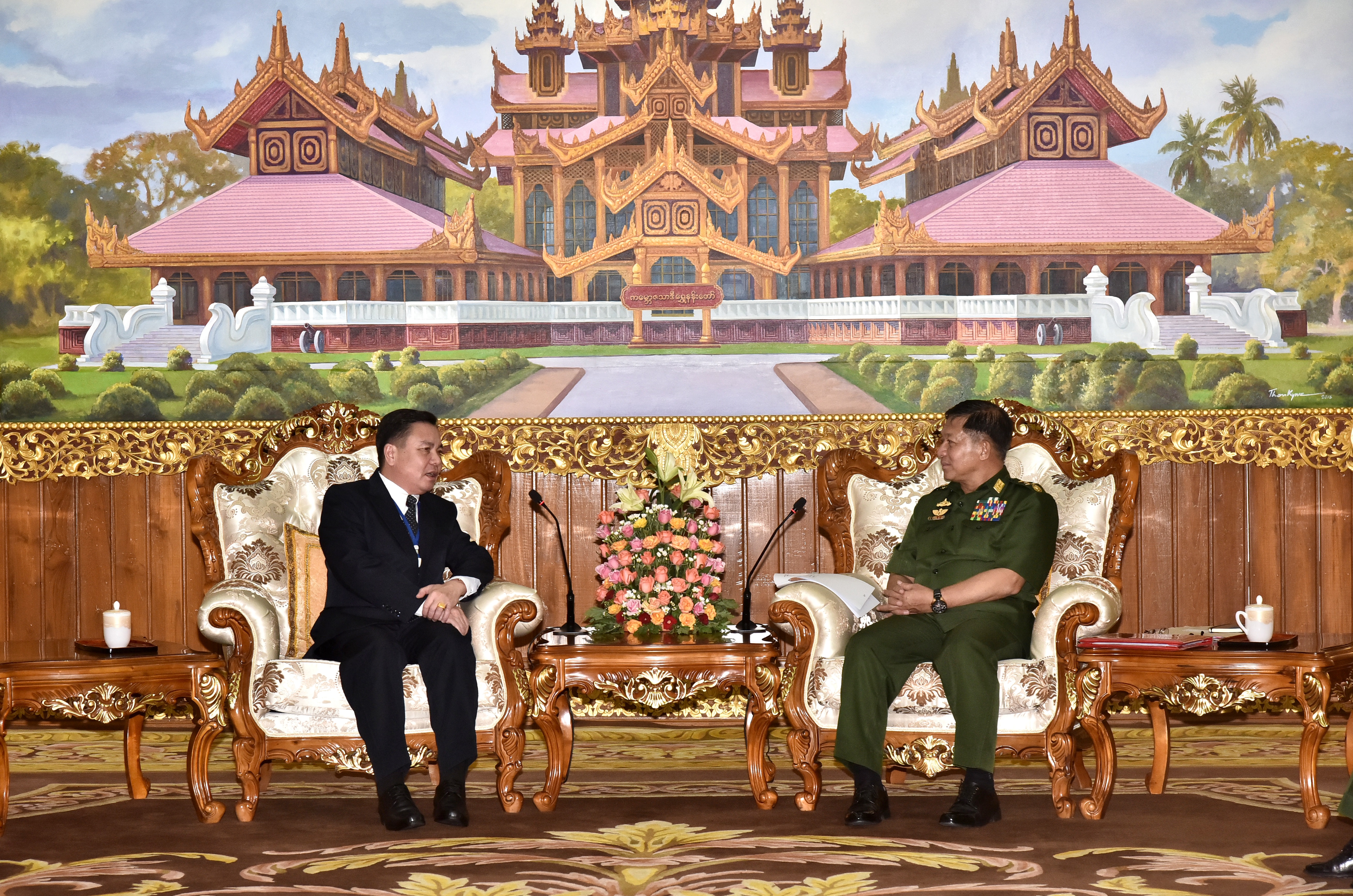 တပ်မတော်ကာကွယ်ရေးဦးစီးချုပ် ဗိုလ်ချုပ်မှူးကြီး မင်းအောင်လှိုင်သည် မြန်မာ နိုင်ငံဆိုင်ရာ လာအိုသံအမတ်ကြီး Mr. Heuangseng Khamdalavong အား ယနေ့မွန်းလွဲပိုင်းတွင် နေပြည်တော်ရှိ ဘုရင့်နောင်ရိပ်သာ ဧည့်ခန်းမဆောင်၌ လက်ခံ တွေ့ဆုံသည်။