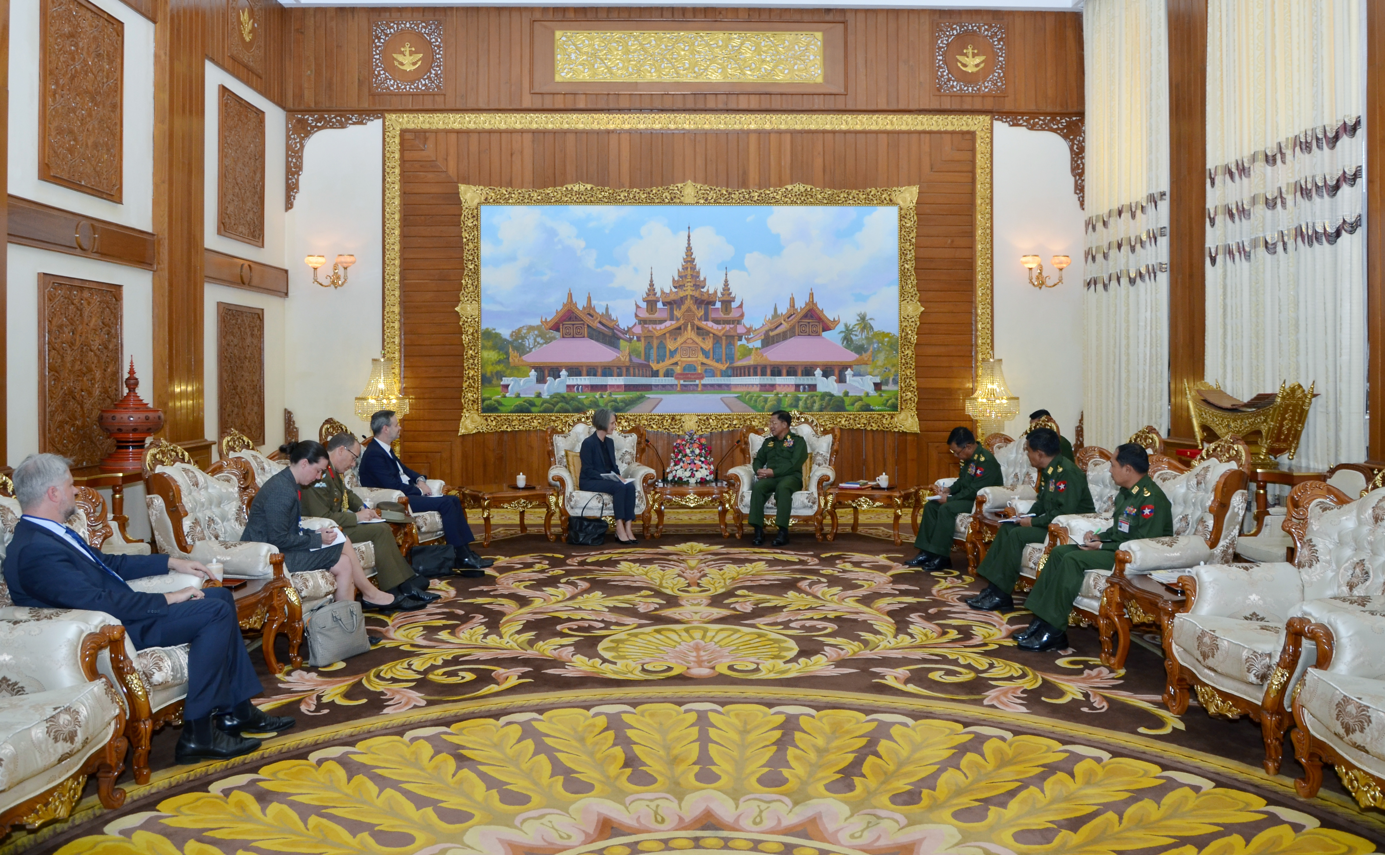 တပ်မတော်ကာကွယ်ရေးဦးစီးချုပ် ဗိုလ်ချုပ်မှူးကြီး မင်းအောင်လှိုင်သည် မြန်မာနိုင်ငံဆိုင်ရာ ဩစတြေးလျနိုင်ငံ သံအမတ်ကြီး H.E. Ms. Andrea Faulkner အား ယနေ့မွန်းလွဲပိုင်းတွင် နေပြည်တော်ရှိ ဘုရင့်နောင်ရိပ်သာ ဧည့်ခန်းမဆောင်၌ လက်ခံတွေ့ဆုံသည်။