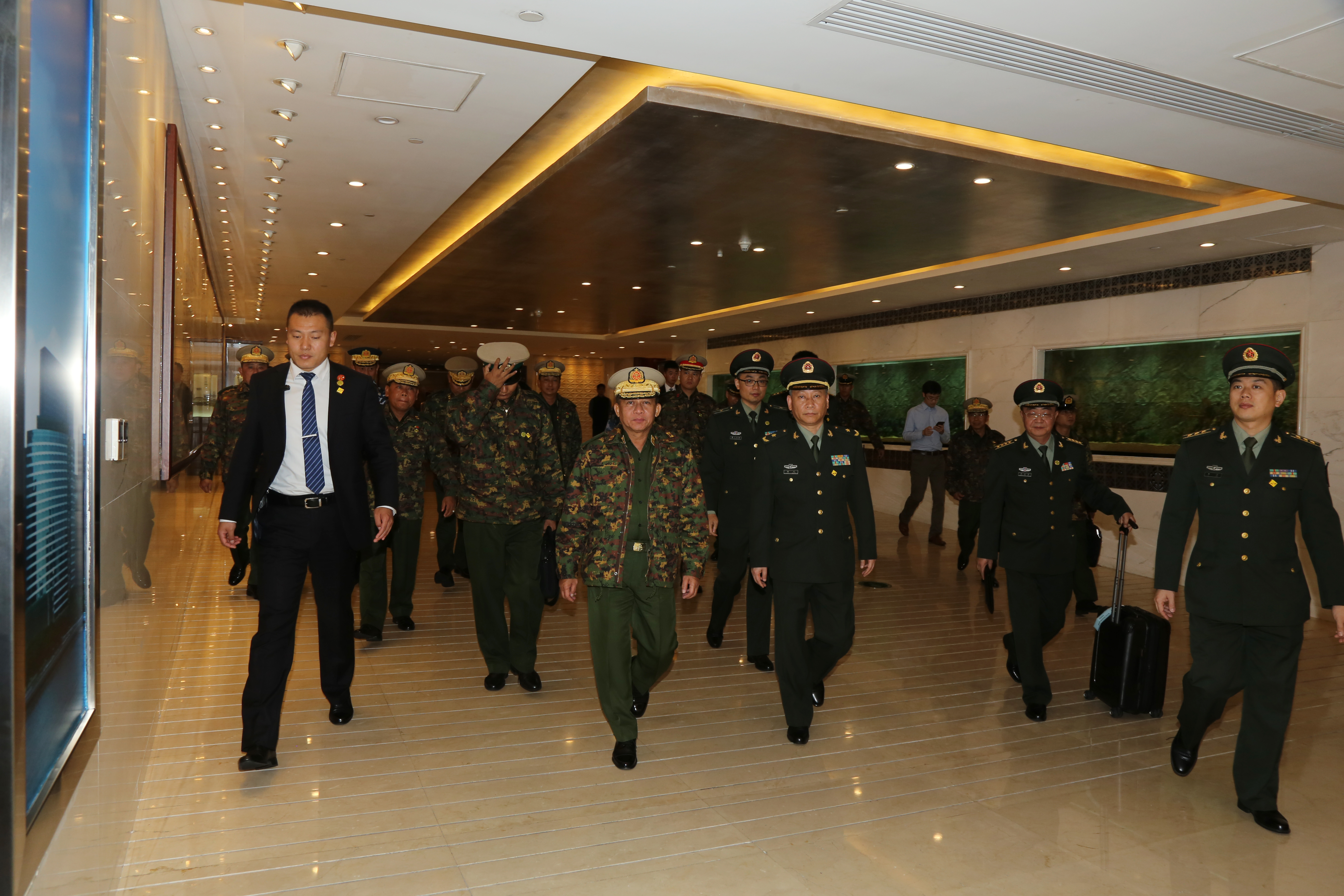 တရုတ်ပြည်သူ့သမ္မတနိုင်ငံ၌ ရောက်ရှိနေသည့် တပ်မတော်ကာကွယ်ရေးဦးစီးချုပ် ဗိုလ်ချုပ်မှူးကြီး မင်းအောင်လှိုင်နှင့်အဖွဲ့သည် ယနေ့နံနက်ပိုင်းတွင် ကွေ့ယန်းလေဆိပ်မှ ထွက်ခွာကြပြီး ကွမ်ကျိုးမြို့ရှိ Baiyuan လေဆိပ်သို့ရောက်ရှိကြရာ တောင်ပိုင်း စစ်နယ်ဝန်းကွပ်ကဲမှုဌာနချုပ်၊ ဒုတိယဌာနချုပ်မှူး Maj. Gen. Tao Guang နှင့် တပ်မတော်အရာရှိကြီးများက ကြိုဆိုနှုတ်ဆက်ကြသည်။