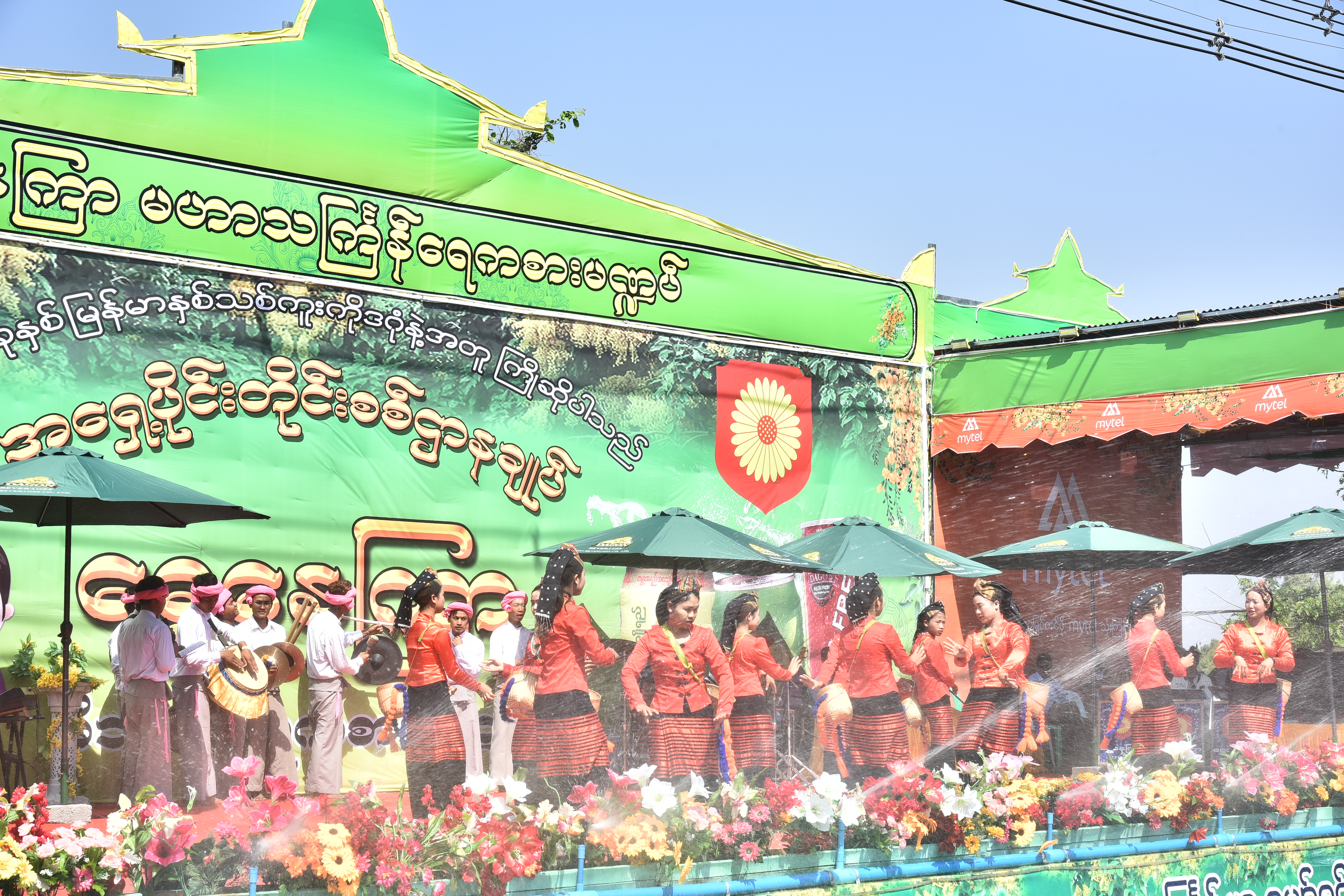 ရှေးဦးစွာ တပ်မတော်ကာကွယ်ရေးဦးစီးချုပ်နှင့်ဇနီးတို့သည် တောင်ကြီးမြို့ရှိ အရှေ့ပိုင်း တိုင်းစစ်ဌာနချုပ် မိသားစုရေသဘင်မဏ္ဍပ်သို့ရောက်ရှိကြပြီး မိသားစု သင်္ကြန်ယိမ်းအကအဖွဲ့များ၊ ဓနုတိုင်းရင်းသားနှင့် ပအိုဝ်းတိုင်းရင်းသား အကအဖွဲ့များ၏ သီဆိုကပြဖျော်ဖြေမှုများကို ကြည့်ရှုအားပေးသည်။