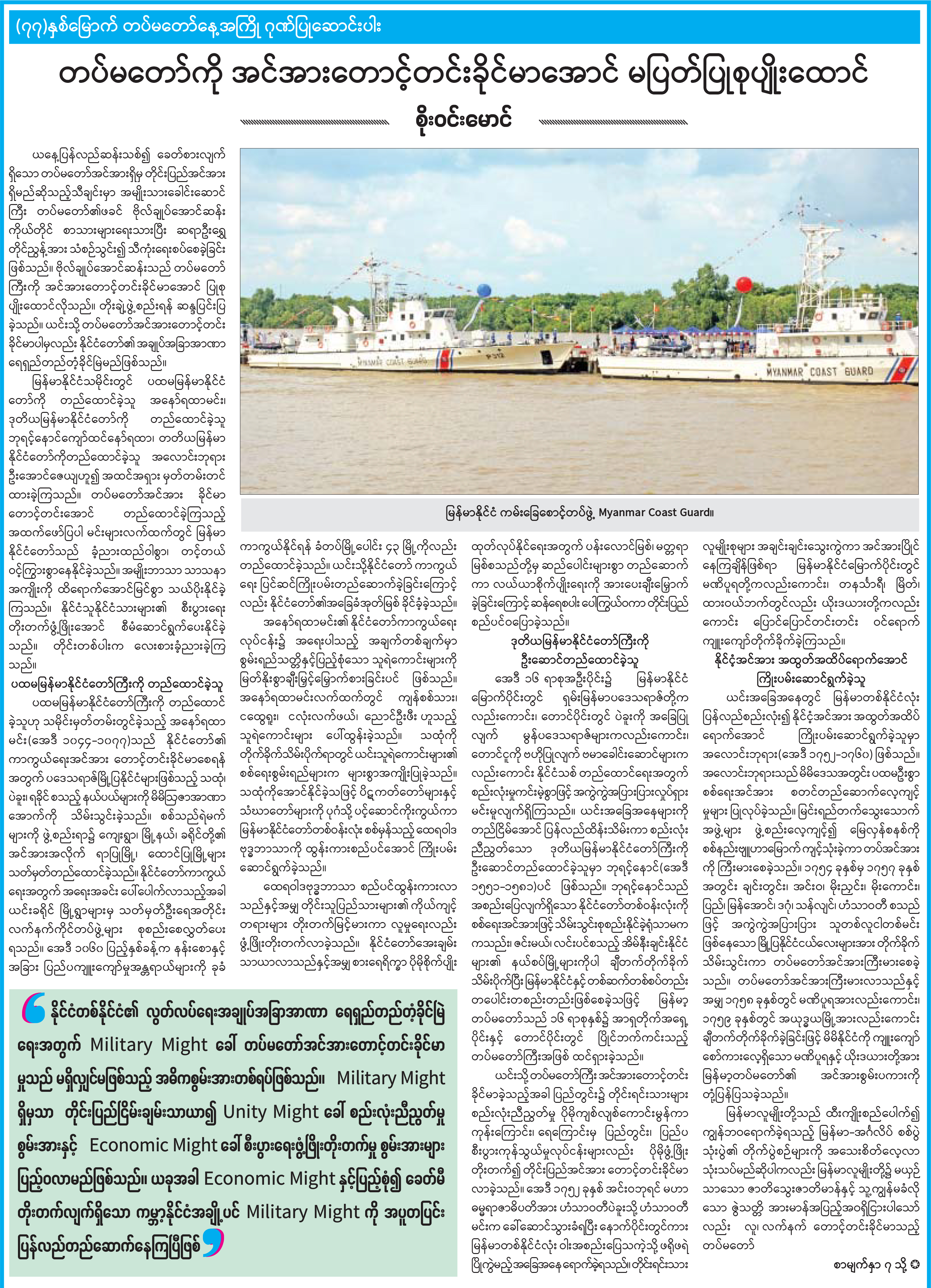 တပ်မတော်ကို အင်အားတောင့်တင်းခိုင်မာအောင် မပြတ်ပြုစုပျိုးထောင်