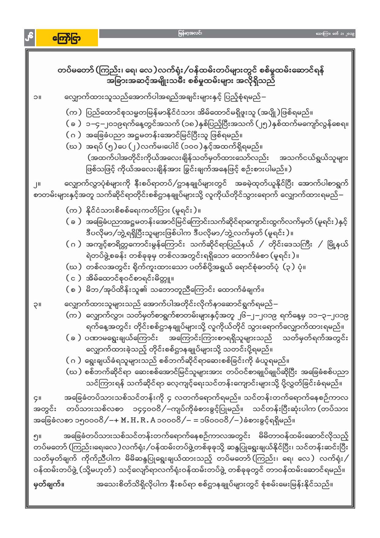 တပ်မတော်(ကြည်း၊ရေ၊လေ) လက်ရုံး/ ဝန်ထမ်းတပ်များတွင် စစ်မှုထမ်းဆောင်ရန် အခြားအဆင့်အမျိုးသမီး စစ်မှုထမ်းများ လျှောက်လွှာခေါ်ယူခြင်း