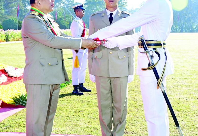 ထို့ပြင် မိမိတို့အား ငယ်စဉ်ကလေးဘဝမှစ၍ ကျွေးမွေးပြုစု စောင့်ရှောက်ခဲ့သည့် မိဘများ၏ ကျေးဇူးကို သိတတ်ရန်၊ ကျေးဇူးဆပ်ရန်လိုအပ်သကဲ့သို့ စည်းကမ်း စနစ်တကျ နေထိုင်လုပ်ကိုင် ဆောင်ရွက်တတ်သည့် အခြေခံကောင်းများ၊ အသိပညာ၊ အတတ် ပညာများရရှိအောင် သင်ကြား လေ့ကျင့်ပေးခဲ့သည့် တပ်မတော်အပေါ်တွင်လည်း ကျေးဇူးသစ္စာ စောင့်သိရမည်ဖြစ်ကြောင်း၊ မိမိတို့၏ ရည်မှန်းချက်များ အောင်မြင်ရေး၊ မိသားစုများ၏ ရည်မှန်းချက်များ မပျောက်ပျက်စေရေးအတွက် ဘဝတစ်လျှောက်လုံး ဆက်လက်ကြိုးစားဆောင်ရွက် သွားရမည်ဖြစ်ကြောင်းနှင့် မိမိကိုယ်ကို ထိန်းထိန်းသိမ်းသိမ်း နေထိုင်ပြီး မိသားစု၊ တပ်မတော်နှင့် နိုင်ငံတော်အတွက် အားကိုး အားထားရသည့် ခေါင်းဆောင်ကောင်းများဖြစ်အောင် စဉ်ဆက်မပြတ်ကြိုးပမ်း ဆောင်ရွက်သွားရမည်ဖြစ်ကြောင်း မှာကြားခဲ့ ကြောင်း သိရသည်။