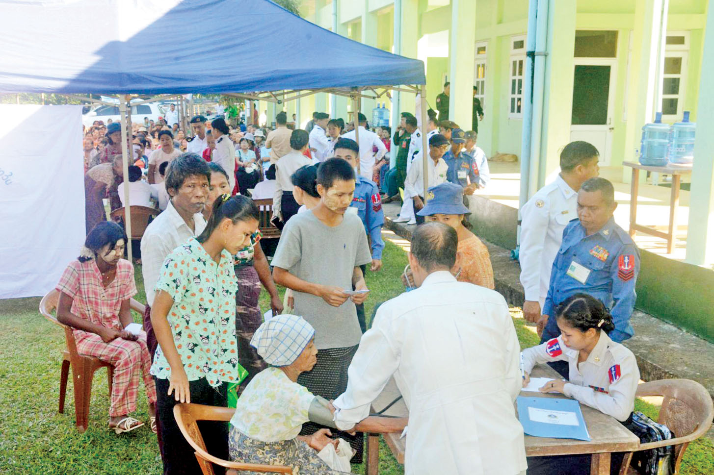 ရန်ကုန်တိုင်းဒေသကြီး ကိုကိုးကျွန်းမြို့နယ်နှင့် ဧရာဝတီတိုင်းဒေသကြီး ဟိုင်းကြီးကျွန်းမြို့နယ်အတွင်းရှိ ကျေးရွာများနှင့်ပတ်ဝန်း ကျင်ကျေးရွာများမှ ဒေသခံပြည်သူများအား ကျန်းမာရေးစောင့်ရှောက်မှု လုပ်ငန်းများ ဆောင်ရွက်ပေးရန်အတွက် တပ်မတော်ပင်လယ်သွားဆေးရုံ ရေယာဉ်(သံလွင်)ဖြင့် ရောက်ရှိနေသည့် တပ်မတော်မှပါရဂူများ၊ ဆေးမှူးများနှင့် သူနာပြုများ ပါဝင်သော တပ်မတော်နယ်လှည့် အထူးကုဆေးအဖွဲ့သည် ယနေ့နံနက်ပိုင်းတွင် ဧရာဝတီတိုင်းဒေသကြီး ငပုတောမြို့နယ် ဟိုင်းကြီးကျွန်းမြို့နှင့် အနီးပတ်ဝန်းကျင်ကျေးရွာများရှိ ဒေသခံပြည်သူ ၅၃၀ အား နယ်မြေခံတပ်မတော်ဆေးရုံ၌ ကျန်းမာရေးစောင့်ရှောက်မှုလုပ်ငန်းများ ဆက်လက်ဆောင်ရွက်ပေးသည်။