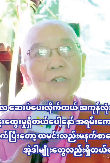 ၃။ ယောက်မက ခွဲရပါတယ်။ ကျွန်မကိုကျတော့ မြို့မှာသွားပြီး စမ်းသပ်ပြီးတော့ မျက်မှန်တပ်လို့ ပြောပါတယ်။ အုပ်ချုပ်ရေးမှူးက ကြေညာထားတဲ့အခါကျတော့ ကျွန်မအဆင်ပြေတယ်တဲ့။ သွားကုလို့ရတယ်ဆိုတဲ့ အခါကျတော့ ကျွန်မလည်း ဒီကိုလာခဲ့တာပါ။ စားတာသောက်တာ ကျွေးတာမွေးတာ အကုန်ကောင်းတယ်။ ဆက်ဆံမှုတွေပါ အကုန်ကောင်းပါတယ်။ ကျေးဇူးတင်ပါတယ်။ ဗိုလ်ကြီးတို့ကလည်း ဆုတောင်းပေးတယ်။ ကျေးဇူးတင်တဲ့အကြောင်းလည်း ပြောခဲ့ပါတယ်။ ဆရာဝန်ကြီးတွေလည်း ကောင်းပါတယ်။ ကုသပေးသူလည်းကောင်းပါတယ်။ အားလုံးလည်းကောင်းပါတယ်။ နှစ်စဉ်နှစ်တိုင်းလည်း ဒီလိုပဲလာနိုင်ပါစေလို့ အမြဲတမ်းလည်း ဖိတ်ခေါ်ပါတယ်။