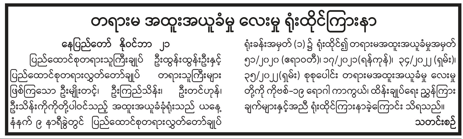 သတင်းဆောင်းပါးများ
