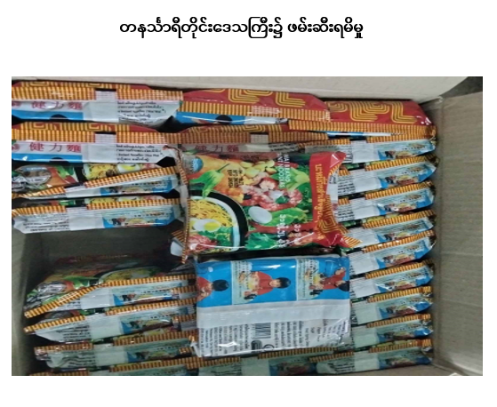ထို့အပြင် စက်တင်ဘာ ၂၀ ရက်တွင် တနင်္သာရီတိုင်းဒေသကြီးတရားမဝင် ကုန်သွယ်မှု တိုက်ဖျက်ရေး အထူးအဖွဲ့၏ စီမံခန့်ခွဲမှုဖြင့် တာဝန်ကျပူးပေါင်းအဖွဲ့က စစ်ဆေးမှုများ ဆောင်ရွက်ခဲ့ရာ မြိတ်မြို့ မြို့သစ်ရပ်ကွက် ကမ်းလွန်ဘောတံတားအနီး၌ စုပုံထားသော အကောက်ခွန်မဲ့ ကုန်ပစ္စည်းများဖြစ်သည့် WAI WAI ခေါက်ဆွဲခြောက်ထုပ် (၉၀၀၀) အပါအဝင် ကုန်ပစ္စည်းနှစ်မျိုး (ခန့်မှန်းတန်ဖိုးငွေကျပ် ၂,၉၂၅,၀၀၀) ကို ဖမ်းဆီးရမိခဲ့ပြီး အကောက်ခွန် လုပ်ထုံးလုပ်နည်းများနှင့်အညီ အရေးယူဆောင်ရွက်လျက်ရှိသည်။