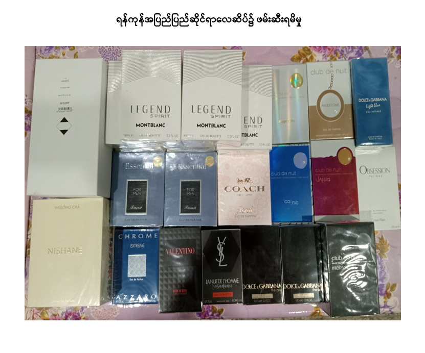 တရားဝင် စာရွက်စာတမ်း အထောက်အထား တင်ပြနိုင်ခြင်း မရှိသည့် ရေမွှေးမျိုးစုံ (၄၂)ပုလင်း (ခန့်မှန်းတန်ဖိုးငွေကျပ် ၁,၄၅၇,၄၀၀) ကို ဖမ်းဆီးရမိခဲ့ပြီး အကောက်ခွန် လုပ်ထုံးလုပ်နည်းများနှင့်အညီ အရေးယူ ဆောင်ရွက်လျက်ရှိသည်။