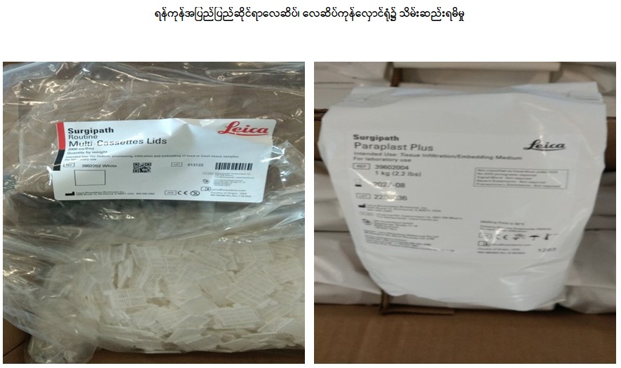 တရားမဝင် ကုန်သွယ်မှု တိုက်ဖျက်ရေး ဦးဆောင်ကော်မတီ၏ ကြီးကြပ်ကွပ်ကဲမှုဖြင့် တရားမဝင် ကုန်သွယ်မှုများကို ဥပဒေနှင့်အညီ ထိရောက်စွာ တားဆီးအရေးယူနိုင်ရေး ဆောင်ရွက်လျက်ရှိရာ စက်တင်ဘာ ၁ ရက်တွင် အကောက်ခွန်ဦးစီးဌာန၏ စီမံခန့်ခွဲမှုဖြင့် ရန်ကုန်အပြည်ပြည်ဆိုင်ရာလေဆိပ်၊ လေဆိပ်ကုန်လှောင်ရုံ၌ တာဝန်ကျစစ်ဆေးရေးအဖွဲ့က စစ်ဆေးမှုများ ဆောင်ရွက်ခဲ့ရာ သွင်းကုန်ကြေညာလွှာ ID တွင် ကြေညာထားခြင်းမရှိသော Leica Paraplast Plus ဘူး (၂၀၀) (ခန့်မှန်း တန်ဖိုးငွေကျပ် ၃,၅၀၀,၀၀၀)ကို သိမ်းဆည်းရမိခဲ့ပြီး အကောက်ခွန် လုပ်ထုံးလုပ်နည်းနှင့်အညီ အရေးယူဆောင်ရွက်လျက်ရှိသည်။