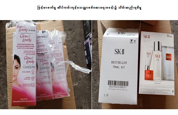ထို့အတူ အောက်တိုဘာ ၁၁ ရက်တွင် အကောက်ခွန်ဦးစီးဌာန၏ စီမံခန့်ခွဲမှုဖြင့် မြန်မာစက်မှု ဆိပ်ကမ်းကုန်သေတ္တာစစ်ဆေး‌‌ရေးစခန်း၌ တာဝန်ကျအကောက်ခွန်အဖွဲ့က စစ်ဆေးမှုများ‌ ဆောင်ရွက် ခဲ့ရာ သွင်းကုန်ကြေညာလွှာ(ID)တွင် ကြေညာထားခြင်းမရှိသည့် အလှကုန်ပစ္စည်းများ (ခန့်မှန်းတန်ဖိုး ငွေကျပ် ၁၉,၆၃၅,၀၀၀)ကို သိမ်းဆည်းရမိခဲ့ပြီး အကောက်ခွန်လုပ်ထုံးလုပ်နည်းနှင့်အညီ အရေးယူ‌ ဆောင်ရွက်လျက်ရှိသည်။