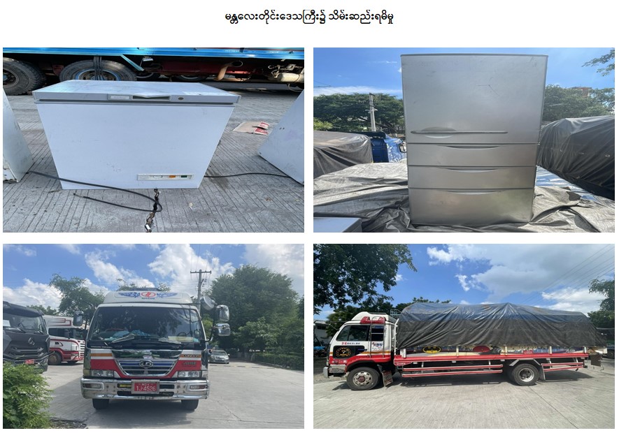 တရားမဝင် ကုန်သွယ်မှုတိုက်ဖျက်ရေးဦးဆောင်ကော်မတီ၏ ကြီးကြပ်ကွပ်ကဲမှုဖြင့် တရားမဝင် ကုန်သွယ်မှုများကို ဥပဒေနှင့်အညီ ထိရောက်စွာ တားဆီးအရေးယူနိုင်ရေး ဆောင်ရွက်လျက်ရှိရာ အောက်တိုဘာ ၇ ရက်တွင် မန္တလေးတိုင်းဒေသကြီး၊ တရားမဝင်ကုန်သွယ်မှု တိုက်ဖျက်ရေး အထူးအဖွဲ့၏ စီမံခန့်ခွဲမှုဖြင့် စွယ်တော်ကြီး ကားကြီးကွင်းအနီး၌ ပူးပေါင်းစစ်ဆေးရေးအဖွဲ့က ရှောင်တခင် စစ်ဆေးမှုများဆောင်ရွက်ခဲ့ရာ မသင်္ကာဖွယ်ရပ်တန့်ထားသော မော်တော်ယာဉ်တစ်စီးပေါ်မှ တရားဝင် စာရွက်စာတမ်း အထောက်အထား တင်ပြနိုင်ခြင်းမရှိသော ရေခဲသေတ္တာအဟောင်းအလုံး (၃၀) (ခန့်မှန်းတန်ဖိုးငွေကျပ် ၄,၄၀၀,၀၀၀)နှင့် အဆိုပါပစ္စည်းများ တင်ဆောင်ထားသော NISSAN CONDOR MK37A TRUCK အမျိုးအစား မော်တော်ယာဉ် တစ်စီး (ခန့်မှန်းတန်ဖိုးငွေကျပ် ၂၀,၀၀၀,၀၀၀)၊ စုစုပေါင်း (ခန့်မှန်းတန်ဖိုးငွေကျပ် ၂၄,၄၀၀,၀၀၀) ကို သိမ်းဆည်းရမိခဲ့ပြီး အကောက်ခွန် လုပ်ထုံးလုပ်နည်းနှင့်အညီ အရေးယူဆောင်ရွက်လျက်ရှိသည်။
