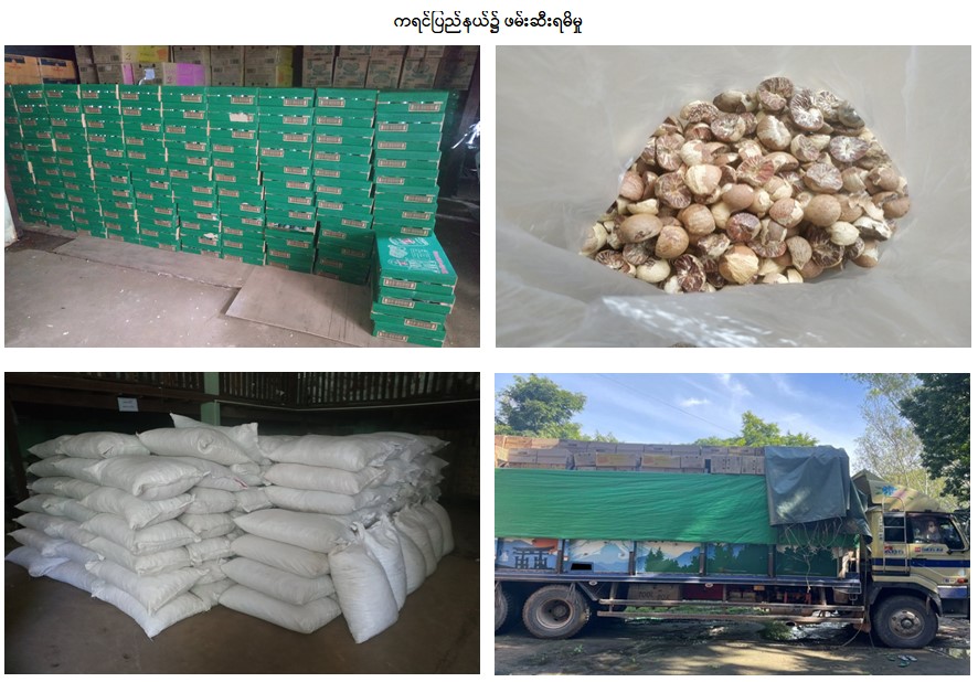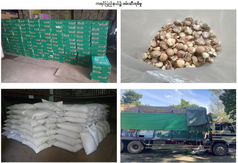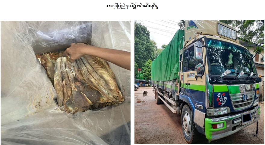 ထို့အတူ ဩဂုတ် ၂၇ ရက်တွင် ကရင်ပြည်နယ်၊ တရားမဝင် ကုန်သွယ်မှုတိုက်ဖျက်ရေး အထူးအဖွဲ့၏ စီမံခန့်ခွဲမှုဖြင့် သင်္ဃန်းညီနောင်ဂိတ်၌ ခရိုင်တရားမဝင် ကုန်သွယ်မှု တားဆီး/ထိန်းချုပ်ရေးအဖွဲ့နှင့် မြဝတီမြို့နယ် အကောက်ခွန် ဦးစီးဌာနမှူးရုံးမှ ဝန်ထမ်းများပါဝင်သော ပူးပေါင်းအဖွဲ့က ရှောင်တခင် စစ်ဆေးမှုများ ဆောင်ရွက်ခဲ့ရာ မော်တော်ယာဉ်နှစ်စီးပေါ်မှ အကောက်ခွန်မဲ့ စားသောက်ကုန် ပစ္စည်းမျိုးစုံ (ခန့်မှန်းတန်ဖိုးငွေကျပ် ၃၂,၃၂၂,၄၀၀) နှင့် အဆိုပါပစ္စည်းများ တင်ဆောင်လာသော မော်တော်ယာဉ်နှစ်စီး (ခန့်မှန်းတန်ဖိုးငွေကျပ် ၄၀,၀၀၀,၀၀၀)၊ စုစုပေါင်း (ခန့်မှန်းတန်ဖိုးငွေကျပ် ၇၂,၃၂၂,၄၀၀) ကို ဖမ်းဆီးရမိခဲ့ပြီး အကောက်ခွန် လုပ်ထုံးလုပ်နည်းနှင့်အညီ အရေးယူဆောင်ရွက်လျက် ရှိသည်။