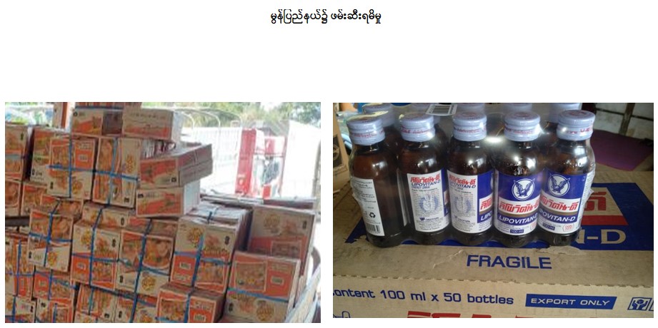 အလားတူ အကောက်ခွန်ဦးစီးဌာန၏ စီမံခန့်ခွဲမှုဖြင့် မွန်ပြည်နယ်၊ မရမ်းချောင်အမြဲတမ်း စစ်ဆေးရေးစခန်း၌ တာဝန်ကျ ပူးပေါင်းစစ်ဆေးရေးအဖွဲ့မှ စစ်ဆေးမှုများ ဆောင်ရွက်ခဲ့ရာ မြဝတီမြို့မှ မန္တလေးမြို့သို့ သွားရောက်မည့် မော်တော်ယာဉ် တစ်စီးပေါ်တွင် သွင်းကုန်ကြေညာလွှာ (ID) တွင် ကြေညာထားသည့် ပစ္စည်းများနှင့်အတူ ရောနှောတင်ဆောင်လာသော  စားသောက်ကုန်များ (ခန့်မှန်းတန်ဖိုးငွေကျပ် ၁,၃၆၆,၈၀၀) ဖမ်းဆီးရမိခဲ့ပြီး အကောက်ခွန်ဥပဒေနှင့်အညီ အရေးယူ ဆောင်ရွက်လျက်ရှိသည်။