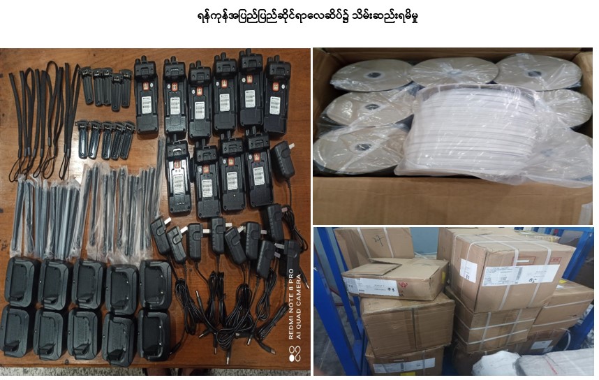 တရားမဝင်ကုန်သွယ်မှုတိုက်ဖျက်ရေးဦးဆောင်ကော်မတီ၏ ကြီးကြပ်ကွပ်ကဲမှုဖြင့် တရားမဝင် ကုန်သွယ်မှုများကို ဥပဒေနှင့်အညီ ထိရောက်စွာ တားဆီးအရေးယူနိုင်ရေး ဆောင်ရွက်လျက်ရှိရာ ဇန်နဝါရီ ၁၇ ရက်တွင် အကောက်ခွန်ဦးစီးဌာန၏ စီမံခန့်ခွဲမှုဖြင့် အပြည်ပြည်ဆိုင်ရာလေဆိပ်၊ ဆိပ်ကမ်းများမှ တာဝန်ကျအကောက်ခွန်စစ်ဆေးရေးအဖွဲ့များက စစ်ဆေးမှုများ ဆောင်ရွက်ခဲ့ရာ အေးရှားဝေါလ်ကုန်သေတ္တာ စစ်ဆေးရေးစခန်း၌ ကုန်သေတ္တာ(၂)လုံးအတွင်းမှ သွင်းကုန်ကြေညာလွှာ (ID) တွင် ကြေညာထားသည်နှင့် ကွဲလွဲပါရှိလာသော လုပ်ငန်းသုံးပစ္စည်းများ (ခန့်မှန်းတန်ဖိုးငွေကျပ် ၅၉,၁၆၈,၈၈၀)ကိုလည်းကောင်း၊ ရန်ကုန်အပြည်ပြည်ဆိုင်ရာလေဆိပ်၌ ခရီးသည်ဝန်စည်များနှင့်အတူ ရောနှောသယ်ဆောင်လာသော တရားဝင် စာရွက်စာတမ်း အထောက်အထား တင်ပြနိုင်ခြင်းမရှိသည့် Motorola အမျိုးအစား စကားပြောစက် (၁၀)လုံး အပါအဝင် ကုန်ပစ္စည်း (၆)မျိုး (ခန့်မှန်းတန်ဖိုးငွေကျပ် ၅၀၀,၀၀၀)ကို လည်းကောင်း၊ လေဆိပ်ကုန်လှောင်ရုံ၌ သွင်းကုန်ကြေညာလွှာ(ID)တွင် ကြေညာ ထားခြင်းမရှိသည့် Elastic Bandage (၃၀၀)ကီလိုဂရမ် (ခန့်မှန်းတန်ဖိုး ငွေကျပ် ၄,၉၈၇,၀၀၀) ကို လည်းကောင်း၊ စုစုပေါင်း ( ခန့်မှန်းတန်ဖိုးငွေကျပ် ၆၄,၆၅၅,၈၈၀)ကို သိမ်းဆည်းရမိခဲ့ပြီး အကောက်ခွန် လုပ်ထုံးလုပ်နည်းနှင့်အညီ အရေးယူဆောင်ရွက် လျက်ရှိသည်။
