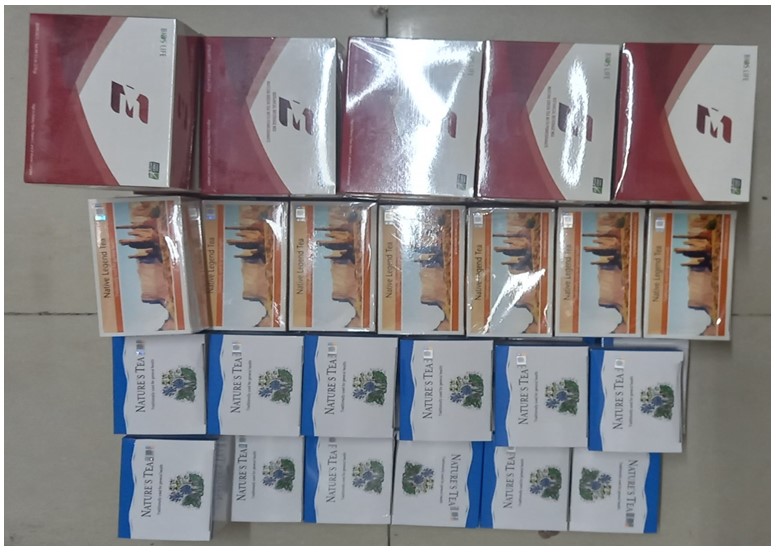 ယင်းအပြင် အကောက်ခွန်ဦးစီးဌာန၏ စီမံခန့်ခွဲမှုဖြင့် ရန်ကုန်အပြည်ပြည်ဆိုင်ရာလေဆိပ်၌ တာဝန်ကျစစ်ဆေးရေးအဖွဲ့က စစ်ဆေးမှုများ ဆောင်ရွက်ခဲ့ရာ ခရီးသည်ဝန်စည်များနှင့်အတူ ရောနှော တင်ဆောင်လာသော တင်သွင်းခွင့် စာရွက်စာတမ်း အထောက်အထား တစ်စုံတစ်ရာ တင်ပြနိုင်ခြင်း မရှိသည့် အမေရိကန်နိုင်ငံထုတ် Nature’s Tea (၁၉)ဗူး အပါအ၀င် ကုန်ပစ္စည်း(၃)မျိုး (ခန့်မှန်းတန်ဖိုး ငွေကျပ် ၂,၈၀၀,၀၀၀)ကို သိမ်းဆည်းရမိခဲ့ပြီး အကောက်ခွန်လုပ်ထုံးလုပ်နည်းနှင့်အညီ အရေးယူ ဆောင်ရွက်လျက်ရှိသည်။