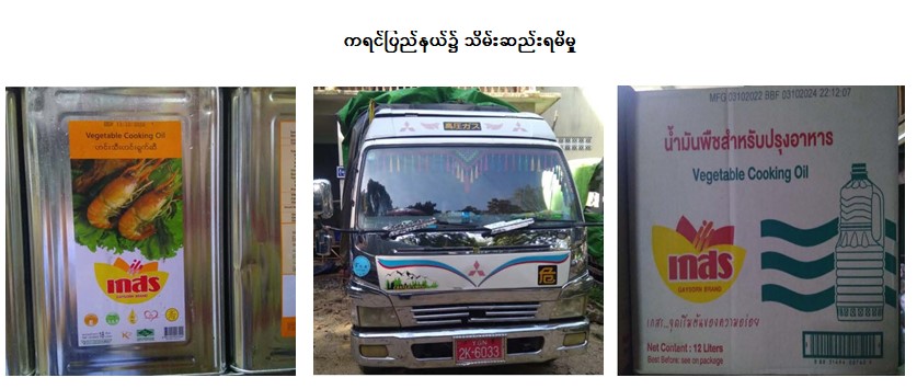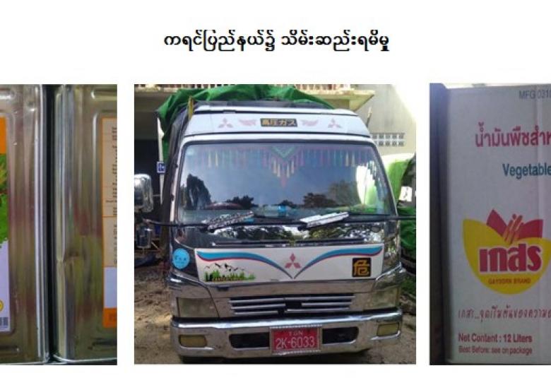 အလားတူ ကရင်ပြည်နယ်၊ တရားမဝင်ကုန်သွယ်မှု တိုက်ဖျက်ရေးအထူးအဖွဲ့၏ စီမံခန့်ခွဲမှုဖြင့် တာဝန်ကျ ပူးပေါင်းအဖွဲ့က သင်္ဃန်းညီနောင်ကျေးရွာ၊ ချစ်ကြည်ရေး ဆီဆိုင်အနီးတွင် ရပ်တန့်ထားသော မော်တော်ယာဉ်တစ်စီးအား စစ်ဆေးမှုများ ဆောင်ရွက်ခဲ့ရာ တရားမဝင် ပုစွန်နှစ်ကောင်တံဆိပ် စားသုံးဆီ လီတာ (၉၆၀) အပါအဝင် ကုန်စည်လေးမျိုး (ခန့်မှန်းတန်ဖိုးငွေကျပ် ၁၇,၀၄၈,၀၀၀) နှင့် အဆိုပါပစ္စည်းများ တင်ဆောင်ထားသော မော်တော်ယာဉ်တစ်စီး (ခန့်မှန်းတန်ဖိုးငွေကျပ် ၁၂,၀၀၀,၀၀၀)၊ စုစုပေါင်း (ခန့်မှန်းတန်ဖိုးငွေကျပ် ၂၉,၀၄၈,၀၀၀) ကို သိမ်းဆည်းရမိခဲ့ပြီး အကောက်ခွန် လုပ်ထုံးလုပ်နည်းနှင့်အညီ အရေးယူ ဆောင်ရွက်လျက်ရှိသည်။