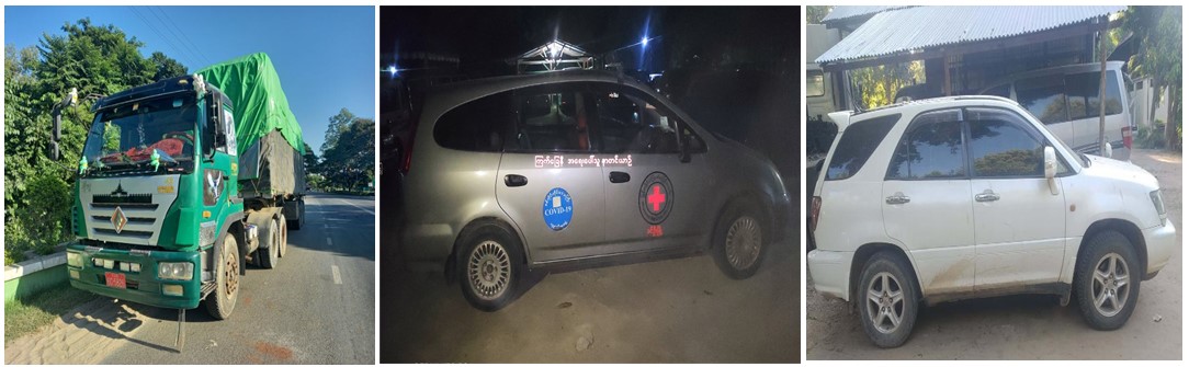 ထို့အတူ စစ်ကိုင်းတိုင်းဒေသကြီး တရားမဝင်ကုန်သွယ်မှုတိုက်ဖျက်ရေးအထူးအဖွဲ့၏ စီမံခန့်ခွဲမှုဖြင့် မြန်မာနိုင်ငံရဲတပ်ဖွဲ့ဦးဆောင်သော ပူးပေါင်းအဖွဲ့က စစ်ဆေးမှုများ ဆောင်ရွက်ခဲ့ရာ မုံရွာမြို့နယ်အတွင်း Jialing အမျိုးအစား လိုင်စင်မဲ့ဆိုင်ကယ်(၁)စီး ခန့်မှန်းတန်ဖိုးငွေကျပ် ၂၀၀,၀၀၀ ကို လည်းကောင်း၊ စစ်ကိုင်းမြို့နယ်အတွင်း Thai Anbo အမျိုးအစား လိုင်စင်မဲ့ ဆိုင်ကယ်(၁)စီး ခန့်မှန်း တန်ဖိုးငွေကျပ် ၂၀၀,၀၀၀ နှင့် လိုင်စင်မဲ့ Jing Gong အမျိုးအစား(၂၂)ဘီးတွဲယာဉ် (၁)စီး ခန့်မှန်းတန်ဖိုးငွေကျပ် ၇,၀၀၀,၀၀၀ ကို လည်းကောင်း၊ အရာတော်မြို့နယ်အတွင်း LEXUS အမျိုးအစား လိုင်စင်မဲ့ မော်တော် ယာဉ်(၁)စီးခန့်မှန်းတန်ဖိုးငွေကျပ် ၈,၀၀၀,၀၀၀ ကိုလည်းကောင်း၊ ရွှေဘို-မြစ်ကြီးနား ကားလမ်း၊ ပူးပေါင်းစစ်ဆေးရေးဂိတ်၌ Honda Stream အမျိုးအစား လိုင်စင်မဲ့ မော်တော် ယာဉ်(၁)စီး ခန့်မှန်းတန်ဖိုးငွေကျပ် ၃,၀၀၀,၀၀၀ ကိုလည်းကောင်း၊ စုစုပေါင်း ခန့်မှန်း တန်ဖိုးငွေကျပ် ၁၈,၄၀၀,၀၀၀ ကို ဖမ်းဆီးရမိခဲ့ပြီး ပို့ကုန်သွင်းကုန်ဥပဒေနှင့်အညီ အရေးယူ ဆောင်ရွက်လျက်ရှိသည်။