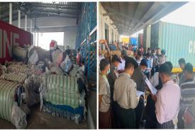 အလားတူ နိုဝင်ဘာ ၃ ရက်တွင် ရန်ကုန်အပြည်ပြည်ဆိုင်ရာဆိပ်ကမ်းများ၏ တရားမဝင် ကုန်သွယ်မှုတိုက်ဖျက်ရေးအထူးအဖွဲ့ဦးဆောင်သော ပူးပေါင်းစစ်ဆေးရေးအဖွဲ့က စစ်ဆေးမှုများ ဆောင်ရွက်ခဲ့ရာ မြန်မာစက်မှုဆိပ်ကမ်း ကုန်သေတ္တာစစ်ဆေးရေးစခန်း၌ ကုန်သေတ္တာ(၁)လုံးအတွင်းမှ သွင်းကုန်ကြေညာလွှာ(ID)တွင် ကြေညာထားခြင်းမရှိသည့် သိုးမွှေးအထည်များ ခန့်မှန်းတန်ဖိုးငွေကျပ် ၆၆,၄၄၈,၂၀၀ ကိုလည်းကောင်း၊ မြန်မာအပြည်ပြည် ဆိုင်ရာဆိပ်ကမ်း(သီလဝါ)၌ ကုန်သေတ္တာ (၃) လုံးအတွင်းမှ သွင်းကုန်ကြေညာလွှာ(ID)တွင် ကြေညာထားသည်နှင့် ကွဲလွဲတင်သွင်းလာသည့် JOCKEY တံဆိပ် ချောဆီ (၇၈,၀၀၀)လီတာ ခန့်မှန်းတန်ဖိုးငွေကျပ် ၁၃၂,၄၇၇,၃၄၅ ကို လည်းကောင်း၊ စုစုပေါင်း ခန့်မှန်းတန်ဖိုးငွေကျပ် ၁၉၈,၉၂၅,၅၄၅ ကို သိမ်းဆည်းရမိခဲ့ပြီး အကောက်ခွန်လုပ်ထုံးလုပ်နည်းနှင့်အညီ အရေးယူ ဆောင်ရွက်လျက်ရှိသည်။
