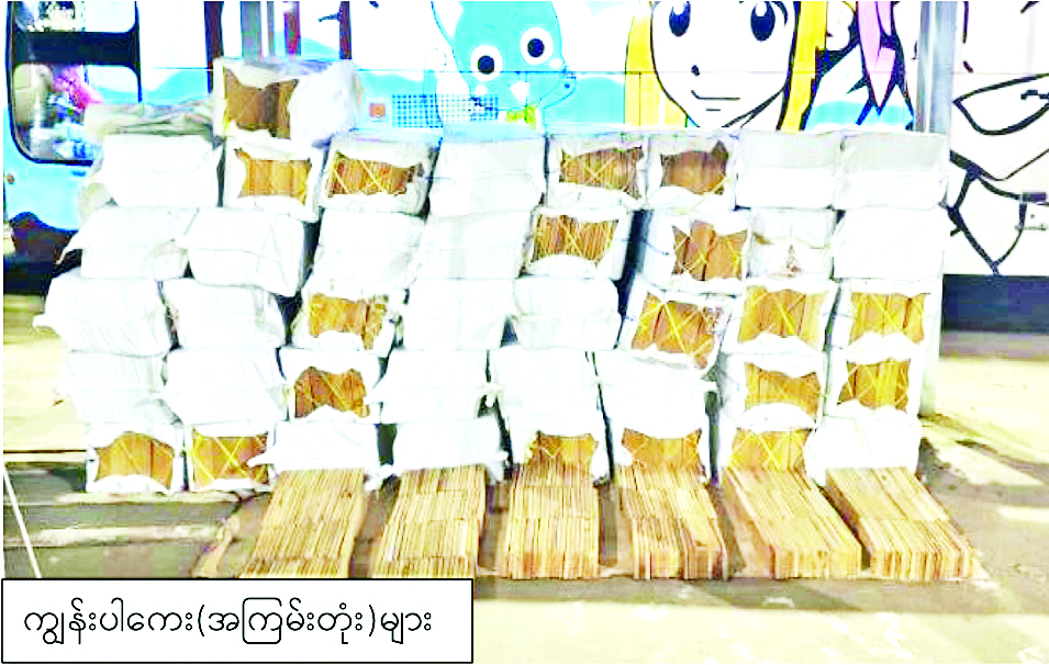 ယင်းအပြင် အကောက်ခွန်ဦးစီးဌာန၏ စီမံခန့်ခွဲမှုဖြင့် တာဝန်ကျပူးပေါင်းအဖွဲ့များက စစ်ဆေးမှုများဆောင်ရွက်ခဲ့ရာ အောက်တိုဘာ ၆ ရက်တွင် ညောင်ခါးရှည် အမြဲတမ်းစစ်ဆေးရေးစခန်း၌ ယာဉ်တစ်စီးပေါ်မှ တရားဝင်စာရွက်စာတမ်း အထောက်အထား တင်ပြနိုင်ခြင်းမရှိသည့် တရားမဝင်ကျွန်းသစ် သုည ဒသမ ၈၇၃ တန် (ခန့်မှန်းတန်ဖိုးငွေကျပ် ၁၇၄၆၈၀၀)၊ အဆိုပါပစ္စည်းများ တင်ဆောင်လာသည့် Shwe Thway Highway Bus တစ်စီး (ခန့်မှန်းတန်ဖိုးငွေကျပ် ၄၅၀၀၀၀၀၀) နှင့် လိုင်စင်မဲ့ ယာဉ်တစ်စီး (ခန့်မှန်းတန်ဖိုးငွေကျပ် ၁၅၀၀၀၀၀၀) စုစုပေါင်းခန့်မှန်းတန်ဖိုးငွေကျပ် ၆၁၇၄၆၈၀၀ ကို သိမ်းဆည်းရမိခဲ့ပြီး အကောက်ခွန်လုပ်ထုံးလုပ်နည်းများနှင့်အညီ အမှုတွဲဖွင့်လှစ်ထားရှိသည်။