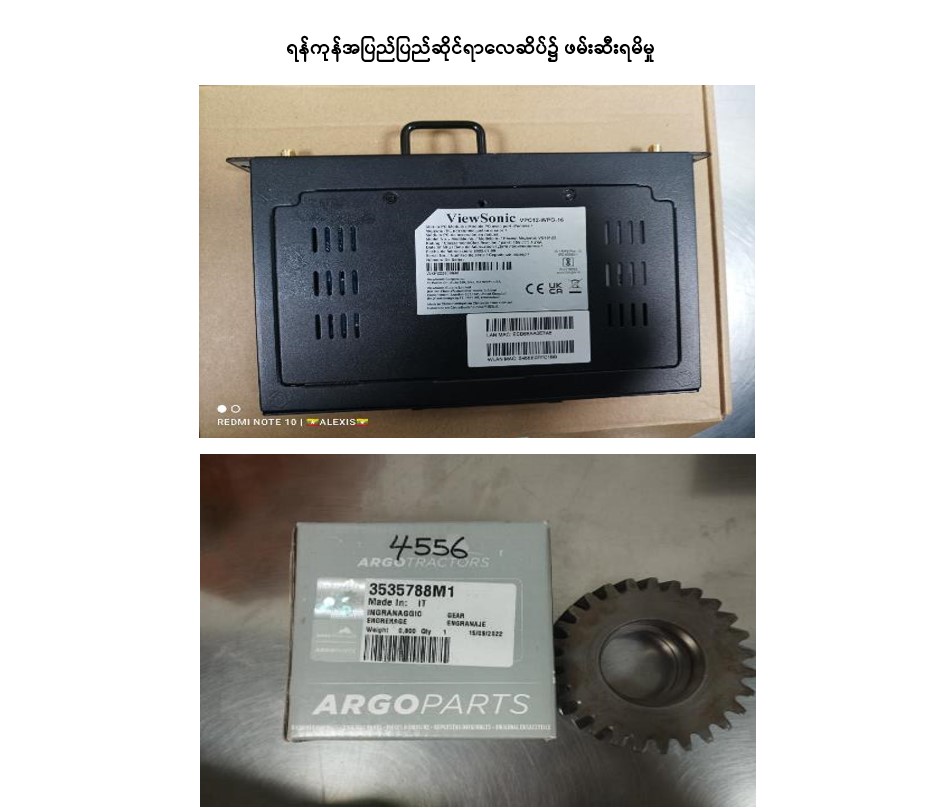 ထို့အတူ အောက်တိုဘာ ၇ ရက်နှင့် ၈ ရက်တို့တွင် အကောက်ခွန်ဦးစီးဌာန၏ စီံမံခန့်ခွဲမှုဖြင့် တာဝန်ကျ ပူးပေါင်းအဖွဲ့များက စစ်ဆေးမှုများဆောင်ရွက်ခဲ့ရာ မြန်မာ့စက်မှုဆိပ်ကမ်း၌ ကုန်သေတ္တာ နှစ်လုံးအတွင်းမှ တရားဝင် စာရွက်စာတမ်းအထောက်အထား တင်ပြနိုင်ခြင်း မရှိသည့် လုပ်ငန်းသုံး ပစ္စည်းတစ်မျိုး (ခန့်မှန်းတန်ဖိုးငွေကျပ် ၁၂၈,၄၉၈,၃၇၀) ကိုလည်းကောင်း၊ ရန်ကုန်အပြည်ပြည်ဆိုင်ရာလေဆိပ်၊ လေဆိပ် (သွင်းကုန်) ၌ တရားဝင်စာရွက်စာတမ်း အထောက်အထား တင်ပြနိုင်ခြင်းမရှိသည့် လုပ်ငန်းသုံးပစ္စည်း သုံးမျိုး၊ လူသုံးကုန်ပစ္စည်းတစ်မျိုး (ခန့်မှန်းတန်ဖိုးငွေကျပ် ၁၅၇,၇၄၉,၄၇၁) ကို လည်းကောင်း၊ ရွာသာကြီး Dry Port ၌ သာမညမှ ရန်ကုန်မြို့သို့ မောင်းနှင်လာသည့် မော်တော်ယာဉ်တစ်စီး‌ပေါ်မှ တရားဝင်စာရွက်စာတမ်း အထောက်အထား တင်ပြနိုင်ခြင်းမရှိသည့် စားသောက်ကုန် ပစ္စည်းတစ်မျိုး၊ လုပ်ငန်းသုံး ပစ္စည်းတစ်မျိုး (ခန့်မှန်းတန်ဖိုးငွေကျပ် ၇၀,၈၈၀,၆၄၀) နှင့် အဆိုပါပစ္စည်းများ တင်‌ဆောင်လာသည့် Dong Feng Tractor Head တစ်စီးနှင့် နောက်တွဲယာဉ်တစ်တွဲ (ခန့်မှန်း တန်ဖိုးငွေကျပ် ၆၀,၀၀၀,၀၀၀) ကိုလည်းကောင်း၊ စုစုပေါင်း (ခန့်မှန်းတန်ဖိုးငွေကျပ် ၄၁၇,၁၂၈,၄၈၁) ကို ဖမ်းဆီးရမိခဲ့ပြီး အကောက်ခွန် လုပ်ထုံးလုပ်နည်းများနှင့်အညီ အရေးယူဆောင်ရွက်လျက်ရှိ သည်။