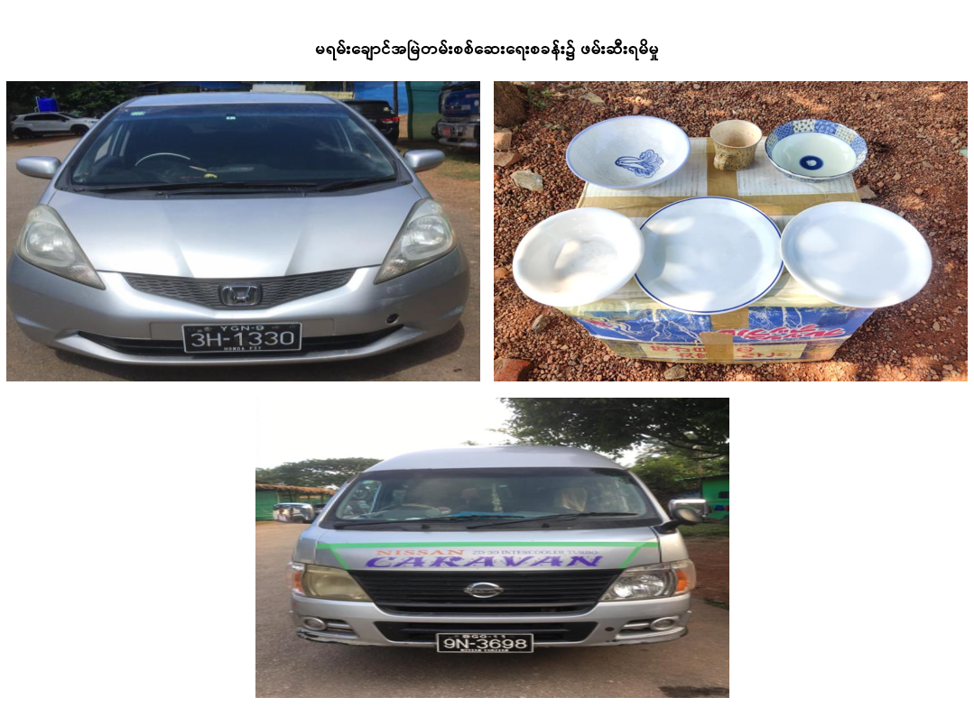 တရားမဝင် ကုန်သွယ်မှုတိုက်ဖျက်ရေးဦးဆောင်ကော်မတီ၏ ကြီးကြပ်ကွပ်ကဲမှုဖြင့် တရားမဝင် ကုန်သွယ်မှုများကို ဥပဒေနှင့်အညီ ထိရောက်စွာ တားဆီးအရေးယူနိုင်ရေး ဆောင်ရွက်လျက်ရှိရာ အကောက်ခွန် ဦးစီးဌာန၏ စီမံခန့်ခွဲမှုဖြင့် တာဝန်ကျပူးပေါင်းအဖွဲ့များက စစ်ဆေးမှုများ ဆောင်ရွက်ရာတွင် အောက်တိုဘာ ၂၈ ရက်တွင် မရမ်းချောင်အမြဲတမ်း စစ်ဆေးရေးစခန်း၌ မုပ္ပလင် - စွပ္ပနူး - အင်္ဂဘို ရှောင်ကွင်းလမ်းအနီး  ရပ်တန့်ထားသော လိုင်စင်မဲ့ Honda Fit မော်တော်ယာဉ် တစ်စီး (ခန့်မှန်းတန်ဖိုးငွေကျပ် ၆,၀၀၀,၀၀၀) ကိုလည်းကောင်း၊ အောက်တိုဘာ ၂၉ ရက်တွင် မရမ်းချောင် အမြဲတမ်းစစ်ဆေးရေးစခန်း၌ မြဝတီမြို့မှ ရန်ကုန်မြို့သို့ မောင်းနှင်လာသော မော်တော်ယာဉ်နှစ်စီးနှင့် သထုံမြို့မှ ပဲခူးမြို့သို့ မောင်းနှင်လာသည့် မော်တော်ယာဉ်တစ်စီးတို့ပေါ်မှ တရားဝင် စာရွက်စာတမ်း အထောက်အထား တင်ပြနိုင်ခြင်းမရှိသည့် ကြွေပန်းကန်မျိုးစုံ ကီလိုဂရမ် (၄၅၀)၊ Porcelain Pillar ကြွေတိုင် ကီလိုဂရမ် (၅၄၀၀)၊ Prawn Hornet စားအုန်းဆီ လီတာ (၁၄၄၀) အပါအဝင် ကုန်ပစ္စည်း (၅) မျိုး (ခန့်မှန်း တန်ဖိုးငွေကျပ် ၁၁,၈၀၀,၀၀၀) နှင့် အဆိုပါ ပစ္စည်းများတင်ဆောင်လာသည့် Nissan Caravan တစ်စီး၊ Toyota Hiace တစ်စီး၊ Dong Feng Tractor Head တစ်စီးနှင့် နောက်တွဲယာဉ်တစ်တွဲ  (ခန့်မှန်းတန်ဖိုးငွေကျပ် ၈၄,၀၀၀,၀၀၀) ကိုလည်းကောင်း၊ ရန်ကုန်အပြည်ပြည်ဆိုင်ရာလေဆိပ်၊ လေဆိပ် (သွင်းကုန်) ၌ ဝန်စည်တစ်ခုအတွင်းမှ မူးယစ်ဆေးဝါးဟု ယူဆရသောအမှုန့်များ (၆) ကီလိုဂရမ် (ခန့်မှန်းတန်ဖိုးငွေကျပ် ၉၀,၀၀၀,၀၀၀) ကိုလည်းကောင်း၊ စုစုပေါင်း (ခန့်မှန်းတန်ဖိုး ငွေကျပ် ၁၉၁,၈၀၀,၀၀၀) ကို ဖမ်းဆီးရမိခဲ့ပြီး အကောက်ခွန်လုပ်ထုံးလုပ်နည်းများနှင့်အညီ အရေးယူဆောင်ရွက်လျက်ရှိသည်။