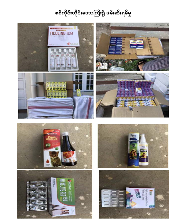 ထို့အပြင် အောက်တိုဘာ ၃၀ ရက်တွင် စစ်ကိုင်းတိုင်းဒေသကြီးတရားမဝင် ကုန်သွယ်မှု တိုက်ဖျက်ရေး အထူးအဖွဲ့၏ စီမံခန့်ခွဲမှုဖြင့် တာဝန်ကျပူးပေါင်းအဖွဲ့က စစ်ဆေးမှုများ ဆောင်ရွက်ခဲ့ရာ စစ်ကိုင်းမြို့နယ် အတွင်း၌ တရားမဝင် ဆေးဝါးများဖြစ်သည့် Gut Boost တိရစ္ဆာန်အားဆေး (၁၇၃၇) ဘူး အပါအဝင် တိရစ္ဆာန်ဆေးဝါး (၁၃) မျိုး စုစုပေါင်း (ခန့်မှန်း တန်ဖိုးငွေကျပ် ၃,၉၉၂,၇၀၀)ကို ဖမ်းဆီးရမိခဲ့ပြီး အမျိုးသား ဆေးဝါးဥပဒေနှင့်အညီ အရေးယူဆောင်ရွက်လျက်ရှိသည်။