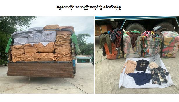 အလားတူ စက်တင်ဘာ ၂၀ ရက်တွင် မန္တလေးတိုင်းဒေသကြီး တရားမဝင် ကုန်သွယ်မှုတိုက်ဖျက်ရေးအထူး အဖွဲ့၏ စီမံခန့်ခွဲမှုဖြင့် လက်ပံလှ-စဉ့်ကူး ယာယီစစ်ဆေးရေးစခန်း၌ တာဝန်ကျပူးပေါင်းစစ်ဆေးရေးအဖွဲ့က စစ်ဆေးမှုများဆောင်ရွက်ခဲ့ရာ မော်တော်ယာဉ်(၁)စီးပေါ်၌ တရားဝင် စာရွက်စာတမ်း အထောက်အထား တစ်စုံတစ်ရာ တင်ပြနိုင်ခြင်းမရှိသည့် အဝတ်အထည်(ဘေထုပ်)များ (ခန့်မှန်းတန်ဖိုး ငွေကျပ် ၅၀,၀၀၀,၀၀၀) နှင့် အဆိုပါပစ္စည်းများ တင်ဆောင်လာသည့် Nissan Diesel အမျိုးအစား မော်တော်ယာဉ်(၁)စီး (ခန့်မှန်း တန်ဖိုးငွေကျပ် ၄၀,၀၀၀,၀၀၀) စုစုပေါင်း (ခန့်မှန်းတန်ဖိုးငွေကျပ် ၉၀,၀၀၀,၀၀၀)ကို ဖမ်းဆီးရမိခဲ့ပြီး အကောက်ခွန် လုပ်ထုံးလုပ်နည်းနှင့်အညီ အရေးယူဆောင်ရွက်လျက် ရှိသည်။