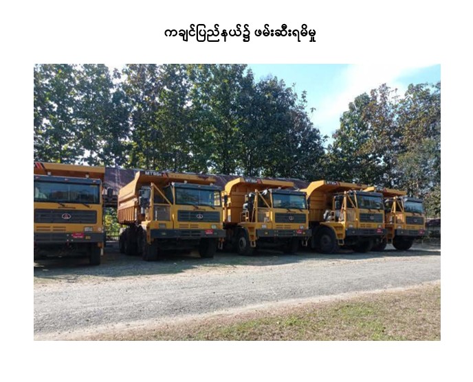 ထို့အတူ ကချင်ပြည်နယ် တရားမဝင်ကုန်သွယ်မှု တိုက်ဖျက်ရေးအထူးအဖွဲ့၏ စီမံခန့်ခွဲမှုဖြင့် တာဝန်ကျပူးပေါင်းအဖွဲ့က စစ်ဆေးမှုများ ဆောင်ရွက်ခဲ့ရာ ဝိုင်းမော်မြို့နယ်၊ မိုင်းနားကျေးရွာအနီး၌ လိုင်စင်မဲ့ Dump Truck အမျိုးအစား မြေသယ်ယာဉ် (၅) စီး စုစုပေါင်း (ခန့်မှန်း တန်ဖိုးငွေကျပ် ၂,၀၀၀,၀၀၀,၀၀၀) ကို ဖမ်းဆီးရမိခဲ့ပြီး ပို့ကုန်သွင်းကုန်ဥပဒေနှင့်အညီ အရေးယူ ဆောင်ရွက်လျက်ရှိသည်။