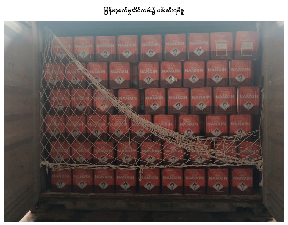တရားမဝင်ကုန်သွယ်မှုတိုက်ဖျက်ရေး ဦးဆောင်ကော်မတီ၏ ကြီးကြပ်ကွပ်ကဲမှုဖြင့် တရားမဝင် ကုန်သွယ်မှုများကို ဥပဒေနှင့်အညီ ထိရောက်စွာ တားဆီးအရေးယူနိုင်ရေး ဆောင်ရွက်လျက်ရှိရာ သြဂုတ် ၉ ရက်တွင် အကောက်ခွန်ဦးစီးဌာန၏ စီမံခန့်ခွဲမှုဖြင့် တာဝန်ကျပူးပေါင်းအဖွဲ့များက စစ်ဆေးမှုများ ဆောင်ရွက်ရာတွင် မြန်မာ့စက်မှုဆိပ်ကမ်း၌ ကုန်သေတ္တာ တစ်လုံးအတွင်းမှ သွင်းကုန်ကြေညာလွှာတွင် ကြေညာထားသည်နှင့် ကွဲလွဲစွာပါရှိလာသည့် တရုတ်နိုင်ငံထုတ် Neoprene Adhesives လုပ်ငန်းသုံးကော် ကီလိုဂရမ် (၁၁၇၀၀) (ခန့်မှန်းတန်ဖိုးငွေကျပ် ၄၆,၆၈၃,၀၀၀) ကိုလည်းကောင်း၊ အေးရှားဝေါလ် ကုန်သေတ္တာစစ်ဆေးရေးစခန်း၌ ကုန်သေတ္တာ (၁၂) လုံးအတွင်းမှ သွင်းကုန်ကြေညာလွှာတွင် ကြေညာထားသည်ထက် ပိုမိုပါရှိလာသည့် Ceramic Wall & Floor Tiles (၇၃၁ ဒသမ ၃၄) စတုရန်းမီတာ၊ Plastic Resin–Polyethylene ကီလိုဂရမ် (၄၉၅၀၀) (ခန့်မှန်းတန်ဖိုးငွေကျပ် ၁၀၉,၃၂၅,၃၄၉) ကို လည်းကောင်း၊ ရန်ကုန်အပြည်ပြည်ဆိုင်ရာလေဆိပ်၌ ခရီးသည်တစ်ဦး၏ ဝန်စည်အတွင်းမှ တရားဝင် တင်သွင်းခွင့် စာရွက်စာတမ်း အထောက်အထား တင်ပြနိုင်ခြင်း မရှိသည့် Machinery Spare Parts (၁၃) ဘူး အပါအဝင် ကုန်ပစ္စည်း (၃) မျိုး (ခန့်မှန်းတန်ဖိုးငွေကျပ် ၃,၀၀၀,၀၀၀) ကိုလည်းကောင်း၊ ရန်ကုန်လေဆိပ် (ကုန်လှောင်ရုံ) ၌ သွင်းကုန်လိုင်စင် တင်ပြနိုင်ခြင်းမရှိသည့် တရုတ်နိုင်ငံထုတ် Fingerprint Scanner တစ်လုံး (ခန့်မှန်းတန်ဖိုးငွေကျပ် ၁,၁၅၅,၀၀၀) ကိုလည်းကောင်း၊ ရွာသာကြီး Dry Port ၌ မြိတ်မြို့မှ ရန်ကုန်မြို့သို့ မောင်းနှင်လာသည့် မော်တော်ယာဉ်တစ်စီးပေါ်မှ သွင်းကုန်ကြေညာလွှာတွင် ကြေညာထားခြင်းမရှိသည့် ထိုင်းနိုင်ငံထုတ် Carabao အားဖြည့်အချိုရည်ဘူး (၁၈၀၀၀) (ခန့်မှန်းတန်ဖိုး ငွေကျပ် ၁၅,၃၀၀,၀၀၀) နှင့် အဆိုပါပစ္စည်းများ တင်ဆောင်လာသည့် Chenglong Tractor Head တစ်စီး နှင့် နောက်တွဲယာဉ် တစ်တွဲ (ခန့်မှန်းတန် ဖိုးငွေကျပ် ၁၀၀,၀၀၀,၀၀၀) ကိုလည်းကောင်း၊ စုစုပေါင်း (ခန့်မှန်း တန်ဖိုးငွေကျပ် ၂၇၅,၄၆၃,၃၄၉) ကို ဖမ်းဆီးရမိခဲ့ပြီး အကောက်ခွန် လုပ်ထုံးလုပ်နည်းများနှင့်အညီ အရေးယူဆောင်ရွက်လျက်ရှိသည်။