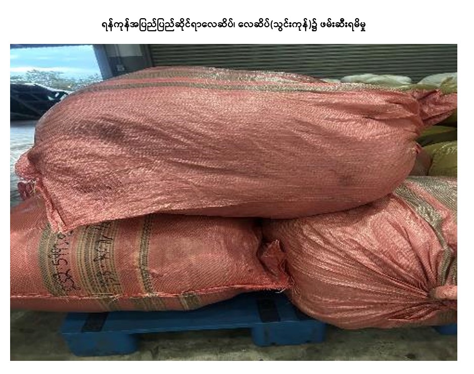 တရားမဝင်ကုန်သွယ်မှုတိုက်ဖျက်ရေး ဦးဆောင်ကော်မတီ၏ ကြီးကြပ်ကွပ်ကဲမှုဖြင့် တရားမဝင် ကုန်သွယ်မှုများကို ဥပဒေနှင့်အညီ ထိရောက်စွာ တားဆီးအရေးယူနိုင်ရေး ဆောင်ရွက်လျက်ရှိသည်။ အကောက်ခွန်ဦးစီးဌာန၏ စီမံခန့်ခွဲမှုဖြင့် တာဝန်ကျပူးပေါင်းအဖွဲ့က စစ်ဆေးမှုများဆောင်ရွက်ခဲ့ရာ အောက်တိုဘာ ၂၁ ရက်တွင် အေးရှားဝေါလ်ကုန်သေတ္တာ စစ်ဆေးရေးစခန်း၌ ကုန်သေတ္တာ နှစ်လုံးအတွင်းမှ တရားဝင်စာရွက်စာတမ်း အထောက်အထား တင်ပြနိုင်ခြင်းမရှိသည့် စက်ယန္တရားအပိုပစ္စည်း (၉၀) မျိုး၊ လုပ်ငန်းသုံးပစ္စည်း တစ်မျိုး (ခန့်မှန်းတန်ဖိုးငွေကျပ် ၁၀၈,၉၈၅,၆၄၄) ကိုလည်းကောင်း၊ အောက်တိုဘာ ၂၂ ရက်တွင် မြန်မာ့စက်မှုဆိပ်ကမ်း၌ ကုန်သေတ္တာ တစ်လုံးအတွင်းမှ တရားဝင်စာရွက်စာတမ်း အထောက်အထား တင်ပြနိုင်ခြင်းမရှိသည့် လူသုံးကုန်ပစ္စည်းတစ်မျိုး (ခန့်မှန်းတန်ဖိုး ငွေကျပ် ၂,၀၂၂,၃၀၀) ကိုလည်းကောင်း၊ ရွာသာကြီး Dry Port ၌ ဘားအံမြို့မှ ရန်ကုန်မြို့သို့ မောင်းနှင်လာသည့် မော်တော်ယာဉ်တစ်စီးပေါ်မှ တရားဝင်စာရွက်စာတမ်း အထောက်အထား တင်ပြနိုင်ခြင်းမရှိသည့် လုပ်ငန်းသုံးပစ္စည်း နှစ်မျိုး၊ လူသုံးကုန်ပစ္စည်းသုံးမျိုး (ခန့်မှန်းတန်ဖိုးငွေကျပ် ၂၅,၂၀၀,၀၀၀) နှင့် အဆိုပါပစ္စည်းများ တင်ဆောင်လာသည့် MAN Tractor Head တစ်စီး နှင့် နောက်တွဲယာဉ်တစ်တွဲ (ခန့်မှန်းတန်ဖိုးငွေကျပ် ၁၃၀,၀၀၀,၀၀၀) ကိုလည်းကောင်း၊ အောက်တိုဘာ ၂၃ ရက်တွင် သီလဝါဆိပ်ကမ်း၌ ကုန်သေတ္တာတစ်လုံးအတွင်းမှ တရားဝင်စာရွက်စာတမ်း အထောက်အထားတင်ပြနိုင်ခြင်းမရှိသည့် လူသုံးကုန်ပစ္စည်းတစ်မျိုး (ခန့်မှန်းတန်ဖိုးငွေကျပ် ၅,၉၆၇,၃၆၀) ကို လည်းကောင်း၊ ရန်ကုန်အပြည်ပြည်ဆိုင်ရာ လေဆိပ်၊ လေဆိပ် (သွင်းကုန်) ၌ တရားဝင်စာရွက်စာတမ်း အထောက်အထား တင်ပြနိုင်ခြင်း မရှိသည့် လုပ်ငန်းသုံးပစ္စည်းတစ်မျိုး (ခန့်မှန်းတန်ဖိုးငွေကျပ် ၂၃,၃၈၁,၄၀၀) ကိုလည်းကောင်း၊ မရမ်းချောင် အမြဲတမ်းစစ်ဆေးရေးစခန်း၌ မော်လမြိုင်မြို့မှ မန္တလေးမြို့သို့ မောင်းနှင်လာသည့် မော်တော်ယာဉ်တစ်စီးပေါ်မှ တရားဝင်စာရွက်စာတမ်း အထောက်အထား တင်ပြနိုင်ခြင်းမရှိသည့် လူသုံးကုန်ပစ္စည်းတစ်မျိုး၊ စားသောက်ကုန်ပစ္စည်းတစ်မျိုး (ခန့်မှန်းတန်ဖိုး ငွေကျပ် ၆,၆၀၀,၀၀၀) နှင့် အဆိုပါပစ္စည်းများ တင်ဆောင်လာသည့် ANKAI Express Bus တစ်စီး (ခန့်မှန်း တန်ဖိုးငွေကျပ် ၆၀,၀၀၀,၀၀၀) ကိုလည်းကောင်း၊ စုစုပေါင်း (ခန့်မှန်းတန်ဖိုးငွေကျပ် ၃၆၂,၁၅၆,၇၀၄) ကို ဖမ်းဆီးရမိခဲ့ပြီး အကောက်ခွန် လုပ်ထုံးလုပ်နည်းများနှင့်အညီ အရေးယူဆောင်ရွက်လျက်ရှိသည်။