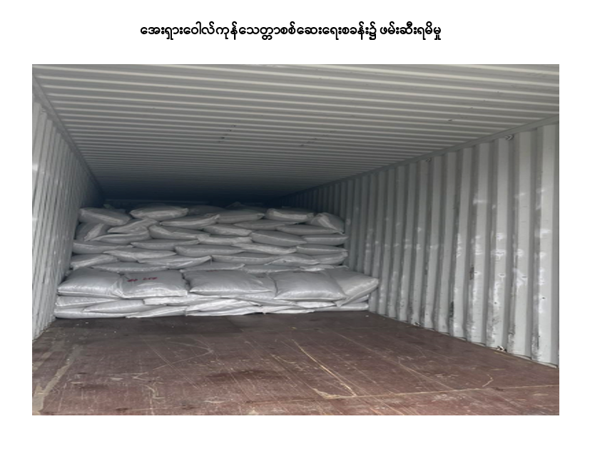 ထို့အတူ ဇွန် ၁၄ ရက်တွင် အကောက်ခွန်ဦးစီးဌာန၏ စီမံခန့်ခွဲမှုဖြင့် တာဝန်ကျပူးပေါင်းအဖွဲ့က စစ်ဆေးမှုများ ဆောင်ရွက်ရာတွင် အေးရှားဝေါလ်ကုန်သေတ္တာ စစ်ဆေးရေးစခန်း၌ ကုန်သေတ္တာတစ်လုံးအတွင်းမှ သွင်းကုန်ကြေညာလွှာတွင် ကြေညာထားခြင်းမရှိသည့် တရုတ် နိုင်ငံထုတ် Sewing Thread (၁၅၉၉) ကီလိုဂရမ် (ခန့်မှန်းတန်ဖိုးငွေကျပ် ၉,၀၀၀,၀၀၀) ကို ဖမ်းဆီးရမိခဲ့ပြီး အကောက်ခွန် လုပ်ထုံးလုပ်နည်းများနှင့်အညီ အရေးယူဆောင်ရွက်လျက် ရှိသည်။