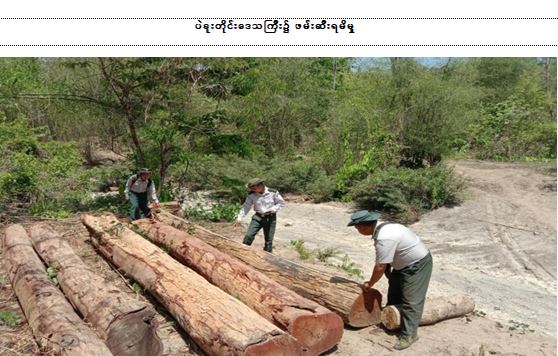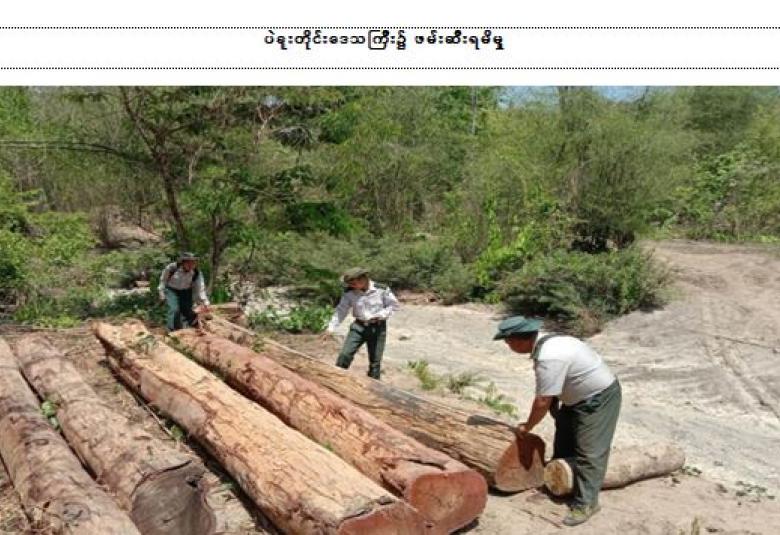 ထို့အတူ ယနေ့တွင် ပဲခူးတိုင်းဒေသကြီး၊ တရားမဝင် ကုန်သွယ်မှုတိုက်ဖျက်ရေး အထူးအဖွဲ့၏ စီမံခန့်ခွဲမှုဖြင့် တိုင်းဒေသကြီး သစ်တောဦးစီးဌာန ဦးဆောင်သော ပူးပေါင်းစစ်ဆေးရေးအဖွဲ့များက စစ်ဆေးမှုများ ဆောင်ရွက်ခဲ့ရာ တောင်ငူခရိုင်နှင့် သာယာဝတီခရိုင် သစ်တောကြိုးဝိုင်းများအတွင်း တရားမဝင် ကျွန်းသစ်နှင့်သစ်မာ (၂၄ ဒသမ ၈၈၅၂) တန်၊ (ခန့်မှန်းတန်ဖိုးငွေကျပ် ၃,၇၂၅,၄၆၀) ကို ဖမ်းဆီးရမိခဲ့ပြီး သစ်တောဥပဒေနှင့်အညီ အရေးယူ ဆောင်ရွက်လျက်ရှိသည်။