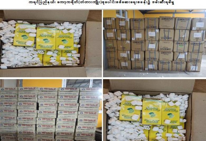 အလားတူ ကရင်ပြည်နယ်၊ တရားမဝင် ကုန်သွယ်မှုတိုက်ဖျက်ရေးအထူးအဖွဲ့၏ စီမံခန့်ခွဲမှုဖြင့် ကော့ကရိတ် (တံတားကျိုး) စုပေါင်းစစ်ဆေးရေးစခန်း၌ တာဝန်ကျစစ်ဆေးရေးအဖွဲ့က စစ်ဆေးမှုများဆောင်ရွက်ခဲ့ရာ ခရီးသည်တင်မှန်လုံယာဉ်(၁)စီးပေါ်တွင် တရားဝင် စာရွက်စာတမ်း အထောက်အထားတစ်စုံတစ်ရာ တင်ပြနိုင်ခြင်း မရှိသည့် ဆေးဝါးနှင့်အချိုရည်များ (ခန့်မှန်းတန်ဖိုးငွေကျပ် ၇၇,၃၈၃,၀၀၀)နှင့် အဆိုပါပစ္စည်းများ တင်ဆောင်လာသည့် မှန်လုံယာဉ်(၁)စီး (ခန့်မှန်းတန်ဖိုးငွေကျပ် ၇၅,၀၀၀,၀၀၀)၊ စုစုပေါင်း(ခန့်မှန်းတန်ဖိုးငွေကျပ် ၁၅၂,၃၈၃,၀၀၀) ကို ဖမ်းဆီးရမိခဲ့ပြီး အကောက်ခွန်ဥပဒေနှင့်အညီ အရေးယူဆောင်ရွက်လျက်ရှိသည်။