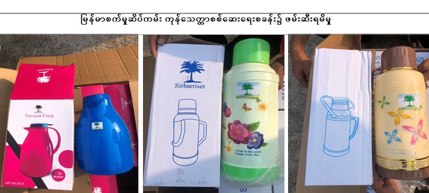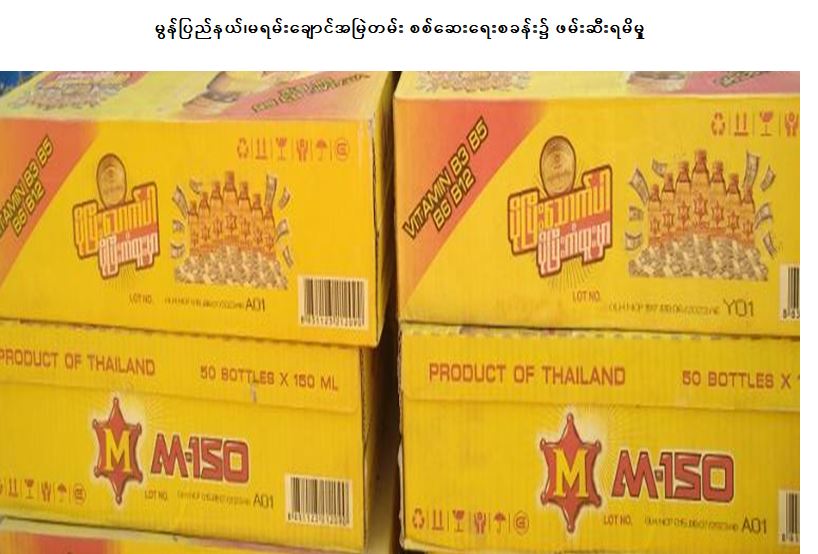 အလားတူ အကောက်ခွန်ဦးစီးဌာန၏ စီံမံခန့်ခွဲမှုဖြင့် မွန်ပြည်နယ်၊ မရမ်းချောင်အမြဲတမ်း စစ်ဆေးရေးစခန်း၌ တာဝန်ကျပူးပေါင်းအဖွဲ့က စစ်ဆေးမှုများ ဆောင်ရွက်ခဲ့ရာသထုံမြို့မှ ရန်ကုန်မြို့သို့ မောင်းနှင်လာသည့် မော်တော်ယာဉ် တစ်စီးပေါ်၌ တရားမဝင် တင်ဆောင်လာသော M-150 အချိုရည်များ (ခန့်မှန်းတန်ဖိုးငွေကျပ် ၁,၃၀၀,၀၀၀) ကို ဖမ်းဆီးရမိခဲ့ပြီး အကောက်ခွန်လုပ်ထုံးလုပ်နည်းနှင့်အညီ အရေးယူဆောင်ရွက် လျက်ရှိသည်။