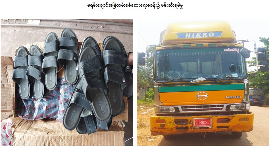 ဧပြီ ၁၅ ရက်တွင် အကောက်ခွန်ဦးစီးဌာန၏ စီမံခန့်ခွဲမှုဖြင့် မွန်ပြည်နယ်၊ မရမ်းချောင်အမြဲတမ်း စစ်ဆေးရေးစခန်း၌ တာဝန်ကျပူးပေါင်းအဖွဲ့က စစ်ဆေးမှုများ ဆောင်ရွက်ခဲ့ရာ မြဝတီမြို့မှ ရန်ကုန်မြို့သို့ ထွက်ခွာလာသော မော်တော်ယာဉ်တစ်စီးပေါ်မှ သွင်းကုန်ကြေညာလွှာတွင် ကြေညာထားခြင်း မရှိသော ယောင်္ကျားစီးဖိနပ် (၃၆၀၀) ရန် (ခန့်မှန်းတန်ဖိုးငွေကျပ် ၇,၅၆၀,၀၀၀) ကိုလည်း ကောင်း၊ အဆိုပါပစ္စည်းများ တင်ဆောင်သော Hino Profia Truckတစ်စီး (ခန့်မှန်းတန်ဖိုးငွေကျပ် ၂၃,၀၀၀,၀၀၀) ကိုလည်းကောင်း၊ စုစုပေါင်း (ခန့်မှန်းတန်ဖိုးငွေကျပ် ၃၀,၅၆၀,၀၀၀) ကို ဖမ်းဆီးရမိခဲ့ပြီး အကောက်ခွန် လုပ်ထုံးလုပ်နည်းများနှင့်အညီ အရေးယူဆောင်ရွက်လျက်ရှိသည်။