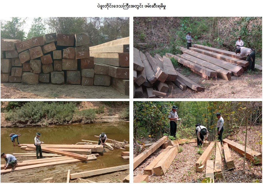 အလားတူ ပဲခူးတိုင်းဒေသကြီး တရားမဝင်ကုန်သွယ်မှု တိုက်ဖျက်ရေးအထူးအဖွဲ့၏ စီမံခန့်ခွဲမှုဖြင့် ပဲခူးမြို့နယ် သစ်တောဦးစီးဌာန ဦးဆောင်သော ပူးပေါင်းအဖွဲ့က စစ်ဆေးမှုများဆောင်ရွက်ခဲ့ရာ ပဲခူးမြို့နယ်အတွင်း တရားမဝင် ကျွန်းသစ်၊ ပျဉ်းကတိုးသစ်နှင့် ကောင်းမှုသစ် (၂၅ ဒသမ ၈၆၃၂) တန် (ခန့်မှန်းတန်ဖိုးငွေကျပ် ၁၁,၇၁၂,၅၈၀)ကို ဖမ်းဆီးရမိခဲ့ပြီး သစ်တောဥပဒေနှင့်အညီ အရေးယူ ဆောင်ရွက်လျက်ရှိသည်။
