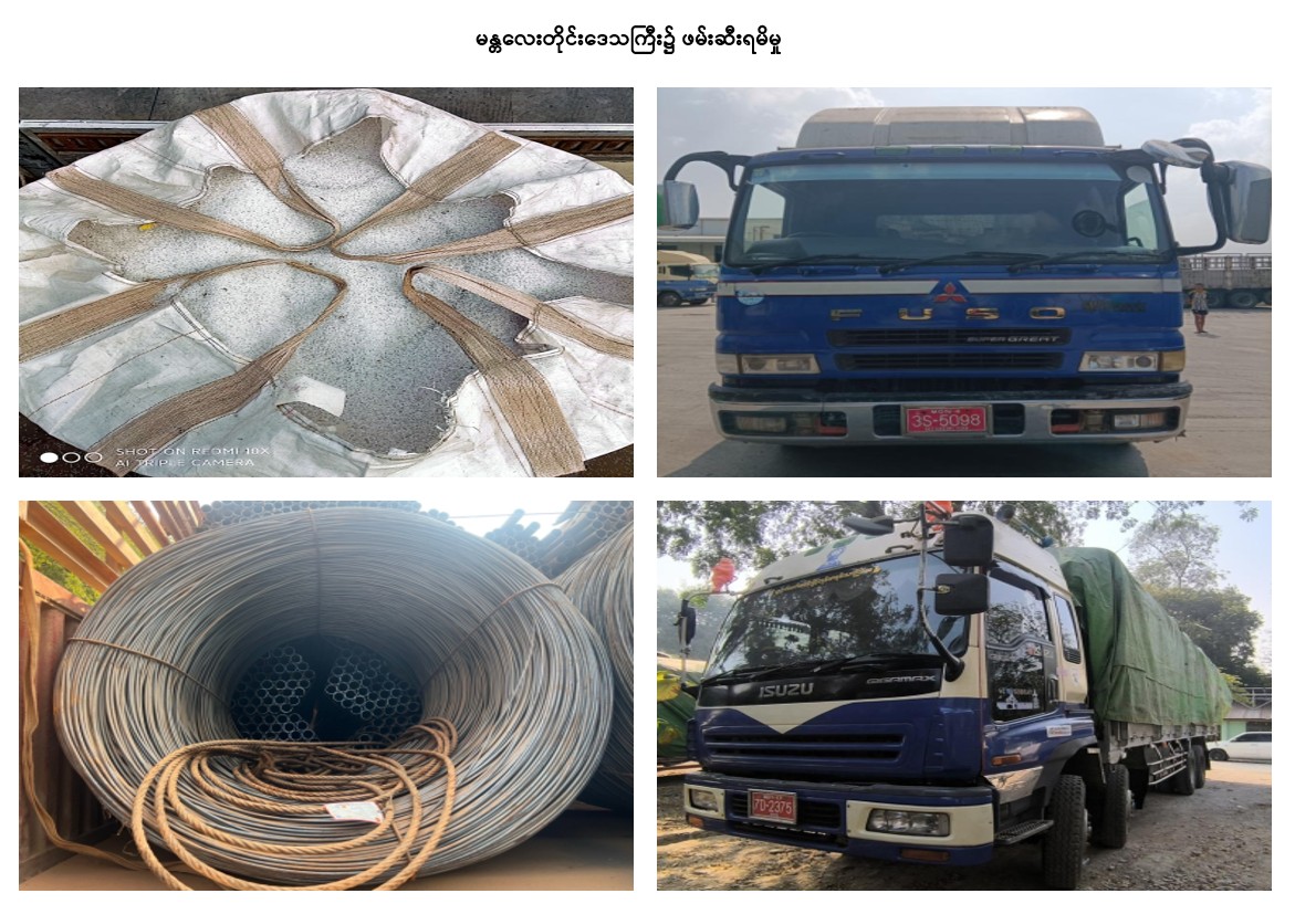 ထို့အပြင် မန္တလေးတိုင်းဒေသကြီး တရားမဝင်ကုန်သွယ်မှုတိုက်ဖျက်ရေးအထူးအဖွဲ့၏ စီမံခန့်ခွဲမှုဖြင့် တာဝန်ကျပူးပေါင်းအဖွဲ့များက စစ်ဆေးမှုများ ဆောင်ရွက်ခဲ့ရာ ပလိပ်နှင့် မြစ်ငယ်လမ်းကြား၌ မော်တော်ယာဉ်တစ်စီးပေါ်မှ တရားဝင်စာရွက်စာတမ်း အထောက်အထား တင်ပြနိုင်ခြင်းမရှိသည့် လုပ်ငန်းသုံးပစ္စည်းတစ်မျိုး (ခန့်မှန်းတန်ဖိုးငွေကျပ် ၁၈,၆၀၀,၀၀၀) နှင့် အဆိုပါပစ္စည်းများ တင်ဆောင်လာသည့် Mitsubishi Fuso Truck တစ်စီး (ခန့်မှန်းတန်ဖိုးငွေကျပ် ၃၀,၀၀၀,၀၀၀) ကိုလည်းကောင်း၊ ပလိပ်လမ်းခွဲအနီး၊ စိန်စီအောင်ဆီဆိုင်အနီး၌ မော်တော်ယာဉ်နှစ်စီးပေါ်မှ တရားဝင် စာရွက်စာတမ်း အထောက်ထား တင်ပြနိုင်ခြင်း မရှိသည့် လုပ်ငန်းသုံးပစ္စည်းနှစ်မျိုး (ခန့်မှန်းတန်ဖိုးငွေကျပ် ၇၁,၂၁၇,၇၂၀) နှင့် အဆိုပါပစ္စည်းများ တင်ဆောင်လာသည့် Nissan Diesel Truck တစ်စီးနှင့် Isuzu Truck တစ်စီး (ခန့်မှန်းတန်ဖိုးငွေကျပ် ၈၅,၀၀၀,၀၀၀) ကိုလည်းကောင်း၊ ထုံးဘို - မြစ်ငယ် တိုးဂိတ်အနီး၌ မော်တော်ယာဉ်တစ်စီးပေါ်မှ တရားဝင်စာရွက်စာတမ်း အထောက်အထား တင်ပြနိုင်ခြင်းမရှိသည့် စားသောက်ကုန်ပစ္စည်းတစ်မျိုး (ခန့်မှန်းတန်ဖိုးငွေကျပ် ၆,၁၄၂,၅၀၀) နှင့် အဆိုပါပစ္စည်းများ တင်ဆောင်လာသည့် Higer Bus တစ်စီး (ခန့်မှန်းတန်ဖိုးငွေကျပ် ၆၃,၀၀၀,၀၀၀) ကိုလည်းကောင်း၊ ပလိပ်မြို့၊ Denko ဆီဆိုင်အနီး၌ မော်တော်ယာဉ်တစ်စီးပေါ်မှ တရားဝင်စာရွက်စာတမ်း အထောက်အထား တင်ပြနိုင်ခြင်းမရှိသည့် လုပ်ငန်းသုံးပစ္စည်း (၁၁) မျိုး (ခန့်မှန်းတန်ဖိုးငွေကျပ် ၂၅,၇၁၃,၀၀၀) နှင့် အဆိုပါပစ္စည်းများ တင်ဆောင်လာသည့် Hino Truck တစ်စီး (ခန့်မှန်းတန်ဖိုးငွေကျပ် ၃၀,၀၀၀,၀၀၀)ကိုလည်းကောင်း၊ စုစုပေါင်း (ခန့်မှန်းတန်ဖိုးငွေကျပ် ၃၂၉,၆၇၃,၂၂၀) ကို ဖမ်းဆီးရမိခဲ့ပြီး အကောက်ခွန် လုပ်ထုံးလုပ်နည်းများနှင့် အညီ အရေးယူဆောင်ရွက်လျက်ရှိသည်။