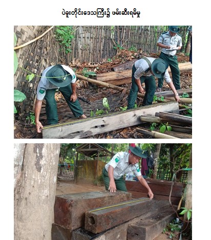 ထို့အတူ ဇွန် ၇ ရက်တွင် ပဲခူးတိုင်းဒေသကြီး တရားမဝင် ကုန်သွယ်မှုတိုက်ဖျက်ရေးအထူးအဖွဲ့၏ စီမံခန့်ခွဲမှုဖြင့် ပဲခူးခရိုင်သစ်တောဦးစီးဌာန ဦးဆောင်သော ပူးပေါင်းအဖွဲ့က ပဲခူးခရိုင်အတွင်း စစ်ဆေးမှုများ ဆောင်ရွက်ခဲ့ရာ တရားမဝင်ကျွန်းသစ် (၂ ဒသမ ၁၄၄)တန်နှင့် အခြားသစ် (၀ ဒသမ ၃၀၈)တန် (ခန့်မှန်း တန်ဖိုးငွေကျပ် ၇၉၂,၁၉၂)ကို သစ်တောဥပဒေအရလည်းကောင်း၊ တာဝန်ကျပူး ပေါင်းအဖွဲ့က ညောင်လေးပင်မြို့နယ်၊ မြို့မ (၄)ရပ်ကွက်၊ ရွှေကံသာလမ်းမအနီး၌ တရားဝင် စာရွက်စာတမ်း အထောက်အထား တစ်စုံတစ်ရာ တင်ပြနိုင်ခြင်းမရှိသည့် Plantana မော်‌တော်ယာဉ်(၁)စီး (ခန့်မှန်းတန်ဖိုး ငွေကျပ် ၃,၅၂၀,၀၀၀)ကို ပို့ကုန်သွင်းကုန်ဥပဒေအရ လည်းကောင်း၊ စုစုပေါင်း(ခန့်မှန်း တန်ဖိုးငွေကျပ် ၄,၃၁၂,၁၉၂) ကို ဖမ်းဆီးအရေးယူ ဆောင်ရွက်လျက်ရှိသည်။