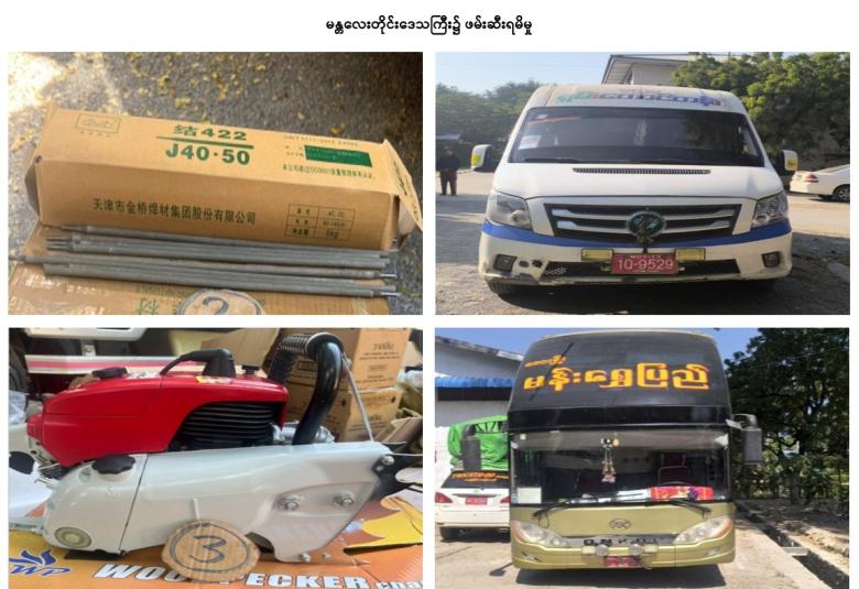 ထို့အတူ မန္တလေးတိုင်းဒေသကြီး တရားမဝင်ကုန်သွယ်မှု တိုက်ဖျက်ရေးအထူးအဖွဲ့၏ စီမံခန့်ခွဲမှုဖြင့် တာဝန်ကျ ပူးပေါင်းအဖွဲ့များက စစ်ဆေးမှုများ ဆောင်ရွက်ခဲ့ရာ ကျွဲတပ်ဆုံစစ်ဆေးရေးဂိတ်၌ ရန်ကုန်မြို့မှ တောင်ကြီးမြို့သို့ သွားရောက်မည့် မော်တော်ယာဉ်တစ်စီးပေါ်မှ တရားဝင်စာရွက် စာတမ်း အထောက်အထား တင်ပြနိုင်ခြင်း မရှိသည့် လူသုံးကုန်ပစ္စည်း နှစ်မျိုး (ခန့်မှန်းတန်ဖိုးငွေကျပ် ၁,၇၃၃,၅၀၀) နှင့် အဆိုပါပစ္စည်းများ တင်ဆောင်လာသည့် Mitsubishi Fuso Truck တစ်စီး (ခန့်မှန်း တန်ဖိုးငွေကျပ် ၃၀,၀၀၀,၀၀၀) ကိုလည်းကောင်း၊ ရတနာပုံတံတား (မန္တလေး) စစ်ဆေးရေးဂိတ်၌ မန္တလေးမြို့မှ ဟုမ္မလင်းမြို့သို့ သွားရောက်မည့် မော်တော်ယာဉ်တစ်စီးပေါ်မှ တရားဝင် စာရွက်စာတမ်း အထောက်အထားတင်ပြနိုင်ခြင်းမရှိသည့် လုပ်ငန်းသုံးပစ္စည်း သုံးမျိုး (ခန့်မှန်းတန်ဖိုးငွေကျပ် ၉,၁၀၅,၅၀၀) နှင့် အဆိုပါပစ္စည်းများ တင်ဆောင်လာသည့် Foton Truck တစ်စီး (ခန့်မှန်းတန်ဖိုးငွေကျပ် ၃၀,၀၀၀,၀၀၀) ကိုလည်းကောင်း၊ ရန်ကုန်-မန္တလေး အမြန်လမ်း၊ မိုင်တိုင်အမှတ် (၃၆၆/၆)၊ တံခွန်တိုင်အဝိုင်းအနီး၌ မော်တော်ယာဉ်တစ်စီးပေါ်မှ တရားဝင် စာရွက်စာတမ်း အထောက်အထား တင်ပြနိုင်ခြင်းမရှိသည့် မော်‌တော်ဆိုင်ကယ်အပိုပစ္စည်း ကိုးမျိုး (ခန့်မှန်းတန်ဖိုးငွေကျပ် ၅၁,၄၀၀,၀၀၀)နှင့် အဆိုပါ ပစ္စည်းများ တင်ဆောင်လာသည့် Ankai Bus တစ်စီး (ခန့်မှန်းတန်ဖိုးငွေကျပ် ၇၀,၀၀၀,၀၀၀) ကို လည်းကောင်း၊ စုစုပေါင်း (ခန့်မှန်းတန်ဖိုးငွေကျပ် ၁၉၂,၂၃၉,၀၀၀)ကို ဖမ်းဆီးရမိခဲ့ပြီး အကောက်ခွန် လုပ်ထုံးလုပ်နည်းများနှင့်အညီ အရေးယူ ဆောင်ရွက်လျက်ရှိသည်။