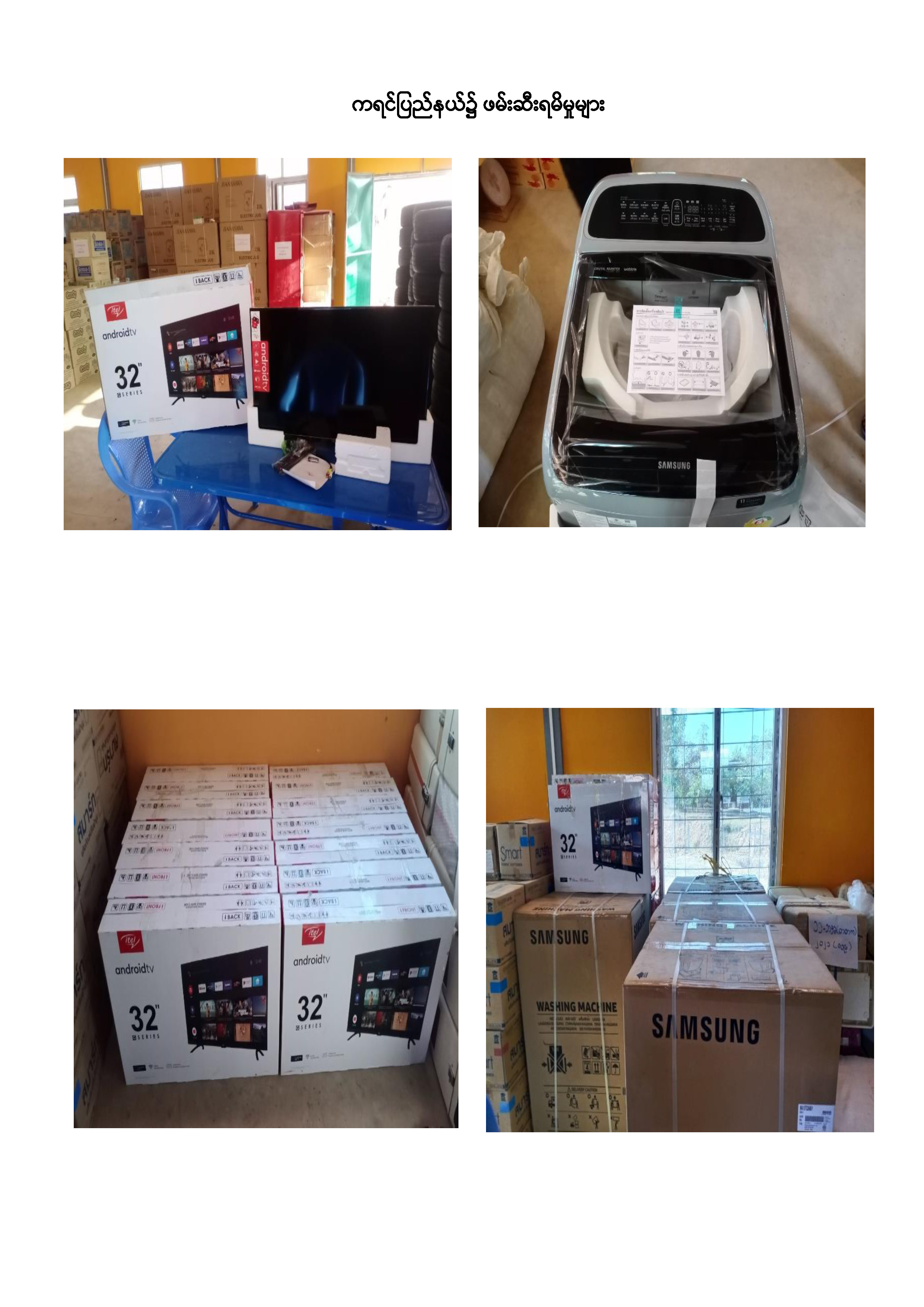 ထို့အပြင် ဖေဖော်ဝါရီ ၁ ရက်တွင် ကရင်ပြည်နယ်၊ တရားမဝင်ကုန်သွယ်မှုတိုက်ဖျက်ရေး အထူးအဖွဲ့၏ စီမံခန့်ခွဲမှုဖြင့် ကော့ကရိတ်(တံတားကျိုး)စုပေါင်းစစ်ဆေးရေးစခန်း၌ ပူးပေါင်း စစ်ဆေးရေးအဖွဲ့မှ စစ်ဆေးမှုများ ဆောင်ရွက်ခဲ့ရာ (၃၂)လက်မ တီဗီ(၁၅)လုံးနှင့် အဝတ်လျှော်စက် (၅)လုံး(ခန့်မှန်းတန်ဖိုးငွေကျပ် ၄,၂၅၀,၀၀၀)ကို ဖမ်းဆီးရမိခဲ့ပြီး အကောက်ခွန်ဥပဒေနှင့်အညီ အရေးယူဆောင်ရွက်လျက်ရှိသည်။