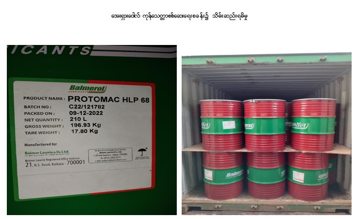 ထို့ပြင် ဇန်နဝါရီ ၉ ရက်တွင် အကောက်ခွန်ဦးစီးဌာန၏ စီမံခန့်ခွဲမှုဖြင့် တာဝန်ကျစစ်ဆေးရေး အဖွဲ့များက စစ်ဆေးမှုများ ဆောင်ရွက်ခဲ့ရာ အေးရှားဝေါလ် ကုန်သေတ္တာစစ်ဆေးရေးစခန်း၌ ကုန်သေတ္တာ(၁)လုံးအတွင်းမှ သွင်းကုန်ကြေညာလွှာ(ID)တွင် ကြေညာထားသည်နှင့် ကွဲလွဲပါရှိလာသော Balmerol အမှတ်တံဆိပ် စက်ဆီ/ချောဆီ (၂၀၀၀) ကီလိုဂရမ် (ခန့်မှန်းတန်ဖိုးငွေကျပ် ၆,၇၉၃,၉၂၀)ကို လည်းကောင်း၊ ရန်ကုန်အပြည်ပြည်ဆိုင်ရာလေဆိပ်၊ လေဆိပ်(ကုန်လှောင်ရုံ)၌ ကုန်သေတ္တာ(၁)လုံး အတွင်းမှ သွင်းကုန်ကြေညာလွှာ(ID)တွင် ကြေညာထားသည်နှင့် ကွဲလွဲပါရှိလာသော အထည်အလိပ်များ (ခန့်မှန်းတန်ဖိုးငွေကျပ် ၃,၀၅၈,၇၈၀)ကို လည်းကောင်း၊ စုစုပေါင်း (ခန့်မှန်းတန်ဖိုးငွေကျပ် ၉,၈၅၂,၇၀၀)ကို သိမ်းဆည်းရမိခဲ့ပြီး အကောက်ခွန်လုပ်ထုံးလုပ်နည်းနှင့်အညီ အရေးယူဆောင်ရွက် လျက်ရှိသည်။