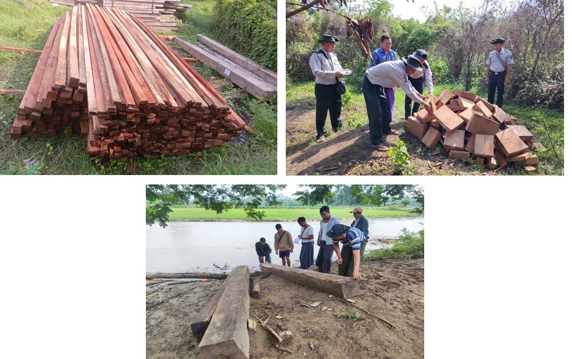 ဇွန်လ ၁၁ ရက်တွင် ပဲခူးတိုင်းဒေသကြီး တရားမဝင်ကုန်သွယ်မှုတိုက်ဖျက်ရေး အထူးအဖွဲ့၏ စီမံခန့်ခွဲမှုဖြင့် တာဝန်ကျပူးပေါင်းအဖွဲ့များက စစ်ဆေးမှုများဆောင်ရွက်ခဲ့ရာ ပဲခူးခရိုင်နှင့် တောင်ငူခရိုင်တို့ အတွင်း၌ တရားမဝင် ကျွန်းသစ် (၅ ဒသမ ၉၂၂) တန်၊ သစ်မာ (၀ ဒသမ ၃၉၀) တန် နှင့် အခြားသစ် (၇ ဒသမ ၁၂၈) တန် စုစုပေါင်း (ခန့်မှန်းတန်ဖိုးငွေကျပ် ၄,၁၉၆,၂၁၇) ကို ဖမ်းဆီးရမိခဲ့ပြီး သစ်တောဥပဒေနှင့်အညီ အရေးယူ ဆောင်ရွက်လျက်ရှိသည်။