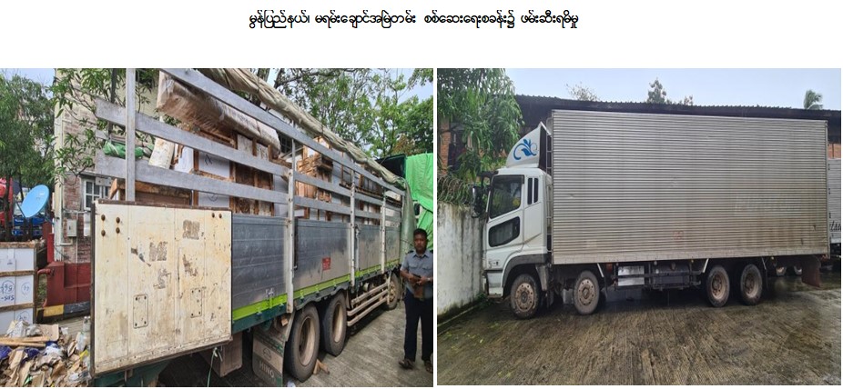 ထို့ပြင် သြဂုတ် ၂၇ ရက်တွင် ရန်ကုန်တိုင်းဒေသကြီး တရားမဝင် ကုန်သွယ်မှုတိုက်ဖျက်ရေး အထူးအဖွဲ့၏ စီမံခန့်ခွဲမှုဖြင့် လှည်းကူးမြို့နယ် သစ်တောဦးစီးဌာန ဦးဆောင်သော စစ်ဆေးရေးအဖွဲ့က စစ်ဆေးမှုများ ဆောင်ရွက်ခဲ့ရာ ရန်ကုန်မြောက်ပိုင်းခရိုင်၊ လှည်းကူးမြို့နယ်အတွင်း တရားမဝင်ကျွန်းသစ်ခွဲသား (၀ ဒသမ ၆၇၁၈) တန် (ခန့်မှန်းတန်ဖိုးငွေကျပ် ၄၄၃,၃၈၈) နှင့် အဆိုပါသစ်များ တင်ဆောင်လာသည့် Honda Odyssey အမျိုးအစား မော်တော်ယာဉ်တစ်စီး (ခန့်မှန်း တန်ဖိုးငွေကျပ် ၁၅,၀၀၀,၀၀၀)၊ စုစုပေါင်း (ခန့်မှန်းတန်ဖိုးငွေကျပ် ၁၅,၄၄၃,၃၈၈) ကို ဖမ်းဆီးရမိခဲ့ပြီး သစ်တောဥပဒေနှင့်အညီ အရေးယူဆောင်ရွက်လျက်ရှိသည်။