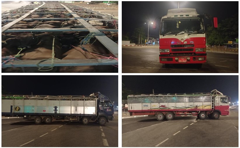 ထို့ပြင် ရန်ကုန်တိုင်းဒေသကြီး တရားမဝင်ကုန်သွယ်မှု တိုက်ဖျက်ရေးအထူးအဖွဲ့၏ စီမံခန့်ခွဲမှုဖြင့် အင်းစိန်ခရိုင်တရားမဝင်ကုန်သွယ်မှုတိုက်ဖျက်ရေးအဖွဲ့နှင့် မင်္ဂလာဒုံခရိုင်ရဲတပ်ဖွဲ့တို့ ဦးဆောင်သော ပူးပေါင်းစစ်ဆေးရေးအဖွဲ့က အမှတ်(၃)လမ်းဆုံ ပူးပေါင်းစစ်ဆေးရေးဂိတ်အနီး၊ ရန်ကုန်-ပဲခူး လမ်းမပေါ်၌ ရှောင်တခင်စစ်ဆေးမှုများဆောင်ရွက်ခဲ့ရာ မော်တော်ယာဉ်(၂)စီးပေါ်မှ တရားမဝင် တင်ဆောင်လာသော နွားထီး(၆၉)ကောင်(ခန့်မှန်းတန်ဖိုးငွေကျပ် ၁၃၈,၀၀၀,၀၀၀)နှင့် အဆိုပါ တိရစ္ဆာန်များတင်ဆောင်သော မော်တော်ယာဉ်(၂)စီး(ခန့်မှန်းတန်ဖိုးငွေကျပ် ၉၀,၀၀၀,၀၀၀)၊ စုစုပေါင်း (ခန့်မှန်းတန်ဖိုးငွေကျပ် ၂၂၈,၀၀၀,၀၀၀)ကို ဖမ်းဆီးရမိခဲ့ပြီး အရေးကြီးကုန်စည်နှင့်ဝန်ဆောင်မှု ဥပဒေနှင့်အညီ အရေးယူဆောင်ရွက်လျက်ရှိသည်။