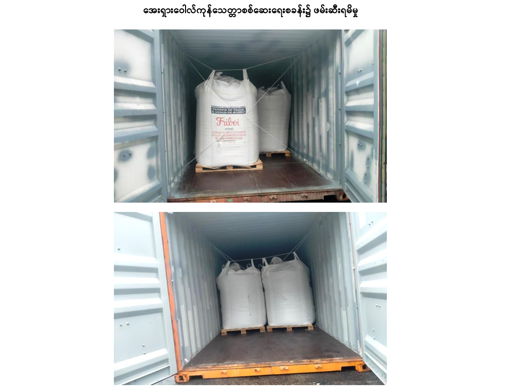 ဇူလိုင် ၆ ရက်တွင် အကောက်ခွန်ဦးစီးဌာန၏ စီမံခန့်ခွဲမှုဖြင့် တာဝန်ကျပူးပေါင်းအဖွဲ့များက စစ်ဆေးမှုများ ဆောင်ရွက်ရွာတွင် အေးရှားဝေါလ်ကုန်သေတ္တာ စစ်ဆေးရေးစခန်း၌ ကုန်သေတ္တာ သုံးလုံးအတွင်းမှ ပိုင်ရှင်မှ စွန့်လွတ်ကြောင်း တင်ပြလာသည့် ဘရာဇီးနိုင်ငံထုတ် တိရိစ္ဆာန်အစားအစာ ကုန်ကြမ်း (၇၈၉၄၆) ကီလိုဂရမ် (ခန့်မှန်းတန်ဖိုးငွေကျပ် ၆၉,၆၃၀,၃၇၂) ကိုလည်းကောင်း၊ ရန်ကုန် အပြည်ပြည်ဆိုင်ရာလေဆိပ်၌ ခရီးသည်တစ်ဦး၏ ဝန်စည်အတွင်းမှ တရားဝင်စာရွက်စာတမ်း အထောက်အထား တင်ပြနိုင်ခြင်းမရှိသည့် YOTO Digital Timber Ports အစုံ (၃၀) အပါအဝင် ကုန်ပစ္စည်း သုံးမျိုး (ခန့်မှန်းတန်ဖိုးငွေကျပ် ၅,၃၅၀,၀၀၀) ကိုလည်းကောင်း၊ စုစုပေါင်း (ခန့်မှန်း တန်ဖိုး ငွေကျပ် ၇၄,၉၈၀,၃၇၂) ကို ဖမ်းဆီးရမိခဲ့ပြီး အကောက်ခွန် လုပ်ထုံးလုပ်နည်းများနှင့်အညီ အရေးယူ ဆောင်ရွက်လျက်ရှိသည်။