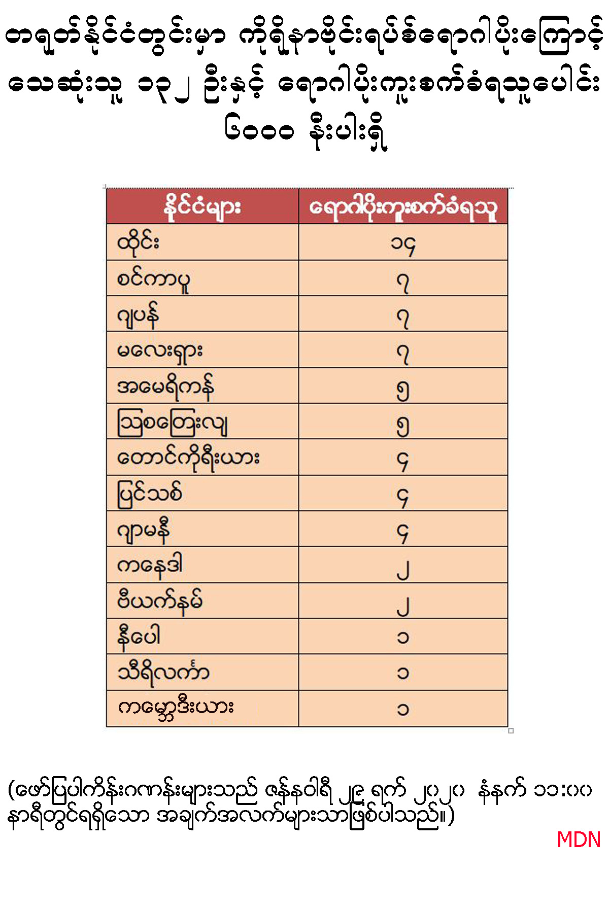 တရုတ်နိုင်ငံတွင်းမှာ ကိုရိုနာဗိုင်းရပ်စ်ရောဂါပိုးကြောင့် သေဆုံးသူ ၁၃၂ ဦး နှင့် ရောဂါပိုးကူးစက်ခံရသူပေါင်း ၆၀ဝ၀ နီးပါး ရှိ