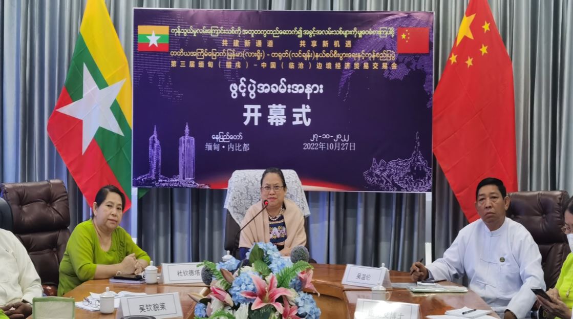 စီးပွားရေးနှင့် ကူးသန်းရောင်းဝယ်ရေး ဝန်ကြီးဌာန၊ မြန်မာကုန်သွယ်မှု မြှင့်တင်ရေးအဖွဲ့မှ ဦးဆောင်၍ ၂၀၂၂ ခုနှစ်၊ အောက်တိုဘာ ၂၇ ရက်မှ ၃၀ ရက်အထိ ကျင်းပမည့် “တတိယအကြိမ် မြန်မာ(လားရှိုး) - တရုတ် (လင်ချန်း) နယ်စပ် စီးပွားရေးနှင့် ကုန်စည်ပြပွဲ” ဖွင့်ပွဲအခမ်းအနားကို ယနေ့နံနက် ၉ နာရီတွင် Virtual စနစ်ဖြင့် ကျင်းပသည်။