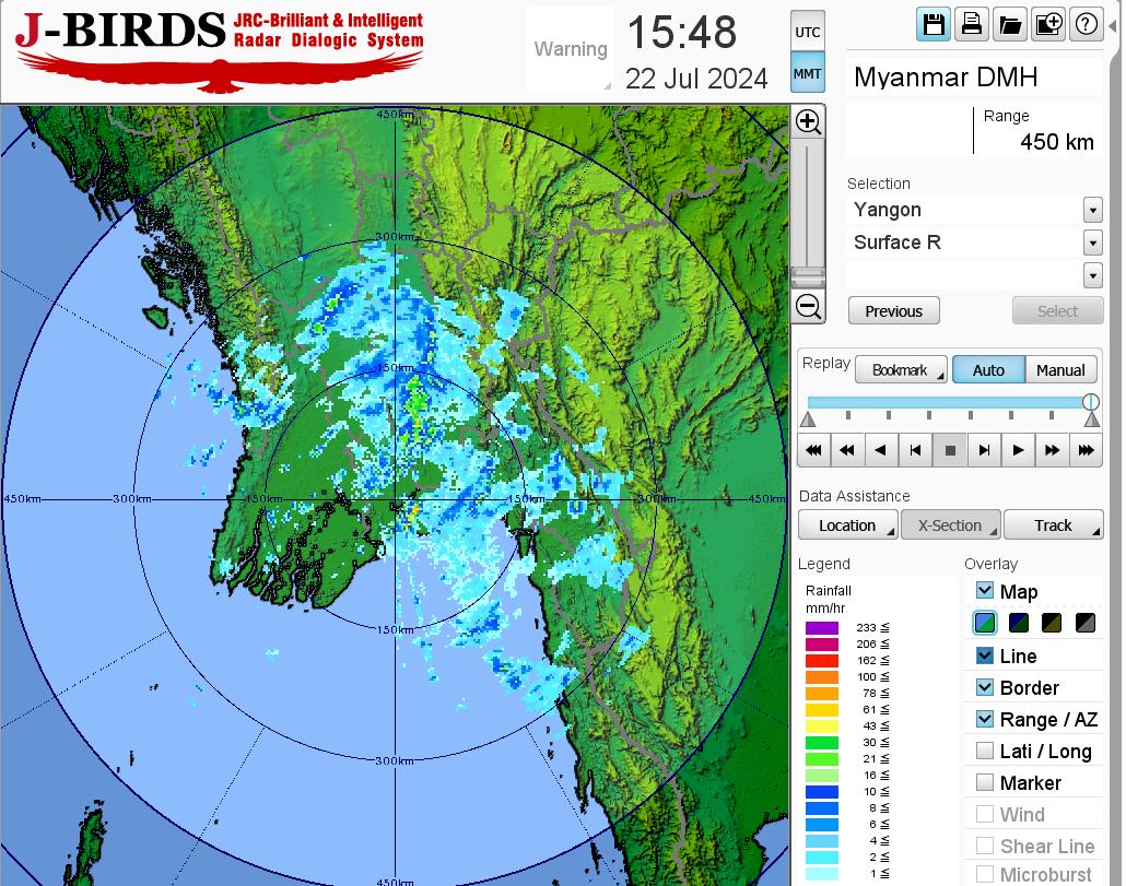 မနက်ဖြန်နံနက်အထိခန့်မှန်းချက်။ စစ်ကိုင်းတိုင်းဒေသကြီးအောက်ပိုင်း၊ မကွေးတိုင်းဒေသကြီးနှင့် ကယားပြည်နယ်တို့တွင် နေရာကျဲကျဲ၊ မန္တလေးတိုင်းဒေသကြီးတွင် နေရာစိပ်စိပ်နှင့် ကျန်တိုင်းဒေသကြီးနှင့် ပြည်နယ်တို့တွင် နေရာအနှံ့အပြား မိုးထစ်ချုန်းရွာပြီး၊ ရခိုင်ပြည်နယ်တွင် ဒေသအလိုက်နှင့် နေပြည်တော်၊ စစ်ကိုင်းတိုင်းဒေသကြီးအထက်ပိုင်း၊ ဧရာဝတီတိုင်းဒေသကြီး၊ ကချင်ပြည်နယ်၊ ကရင်ပြည်နယ်နှင့် မွန်ပြည်နယ်တို့တွင် နေရာကွက်၍ မိုးကြီးနိုင်ပါသည်။ ရွာရန်ရာနှုန်းပြည့် ဖြစ်ပါသည်။