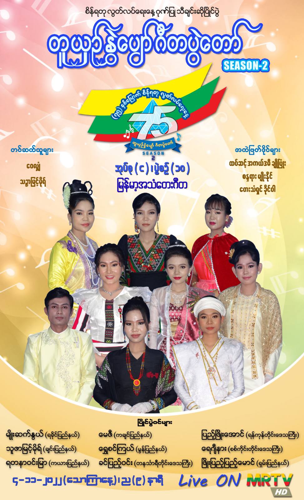 (၇၅)နှစ်မြောက် စိန်ရတုလွတ်လပ်ရေးနေ့ကို ကြိုဆိုဂုဏ်ပြုသောအားဖြင့်တူယှဉ် နွှဲပျော်ဂီတပွဲတော်” Season-2 သီချင်းဆိုပြိုင်ပွဲကို ပွဲစဉ်(၁၈)ပွဲဖြင့် စက်တင်ဘာ ()ရက်နေ့မှ စတင်ပြီး အပတ်စဉ်သောကြာနေ့ ညတိုင်း ကျင်းပလျက်ရှိရာ ဒီဇင်ဘာ(၃၀) ရက်အထိ ကျင်းပမည်ဖြစ်သည်။