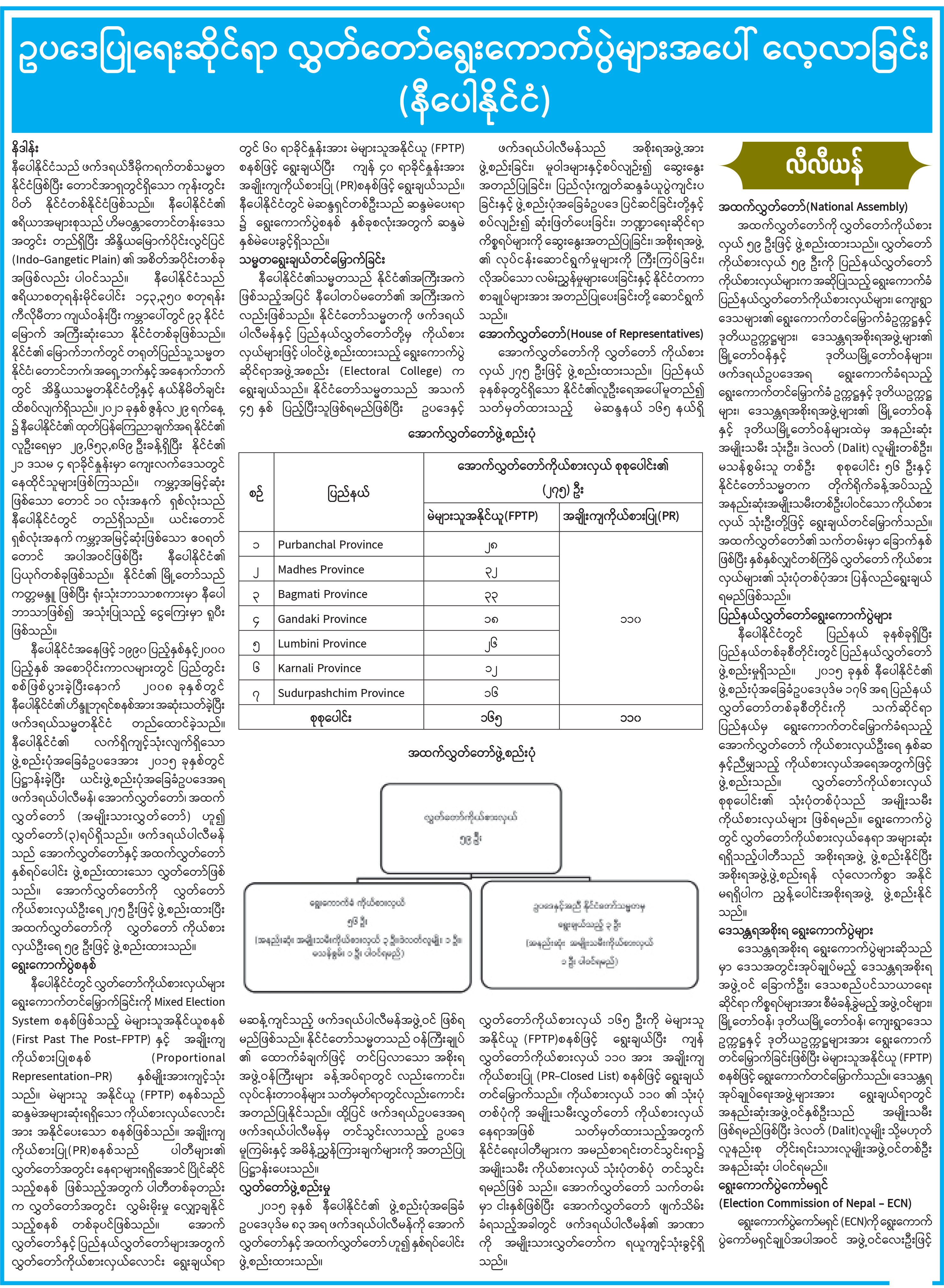 ဥပဒေပြုရေးဆိုင်ရာ လွှတ်တော်ရွေးကောက်ပွဲများအပေါ် လေ့လာခြင်း (နီပေါနိုင်ငံ)